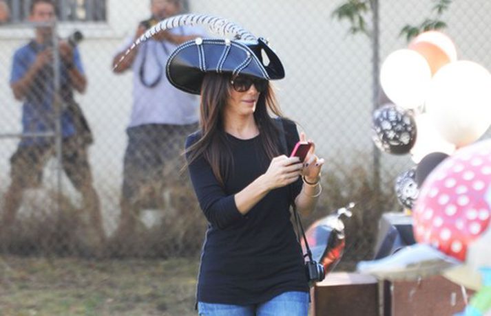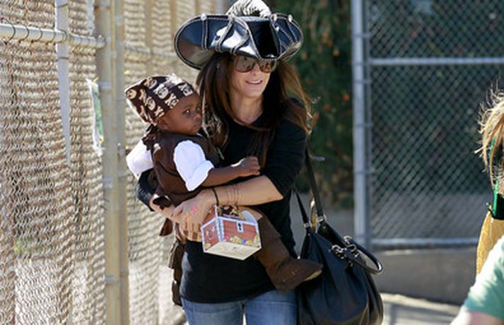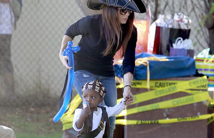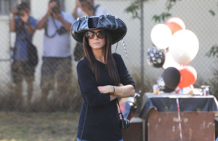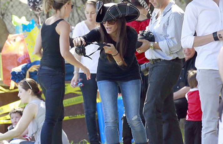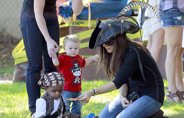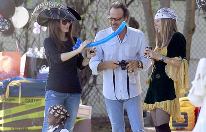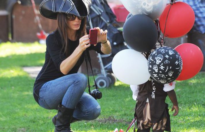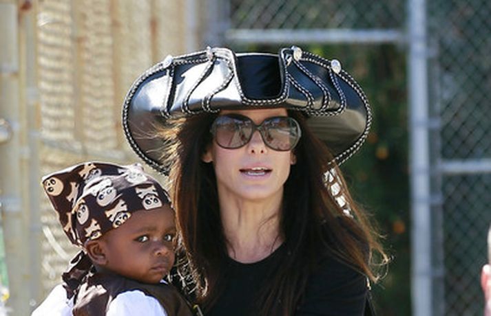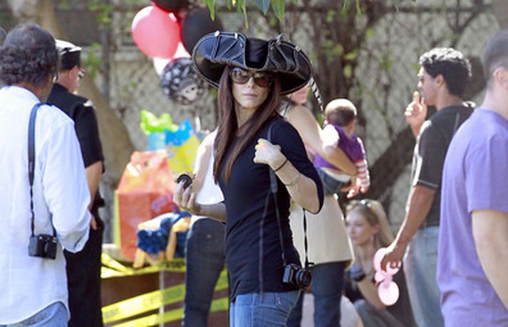 Leikkonan Sandra Bullock, 47 ára, og tveggja ára sonur hennar, Louis, voru klædd eins og sjóræningjar í barnaafmæli um helgina. Sandra, sem myndaði krúsídúlluna, var með stóran sjóræningjahatt á höfði eins og sjá má í myndasafni.Konur eru eins og ofnar. Við þurfum 5 til 15 mínútur til að hitna, lét leikkonan hafa eftir sér.