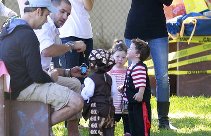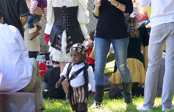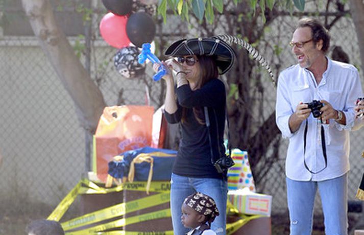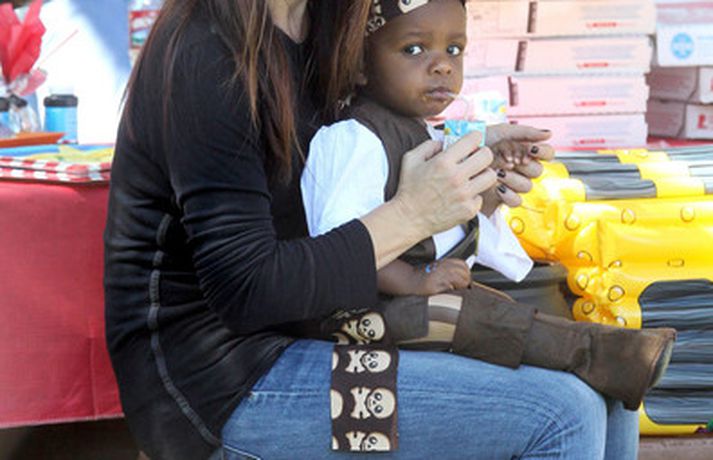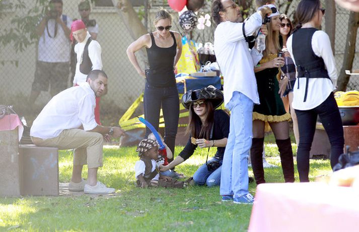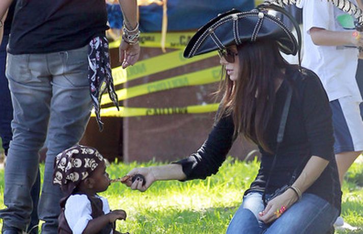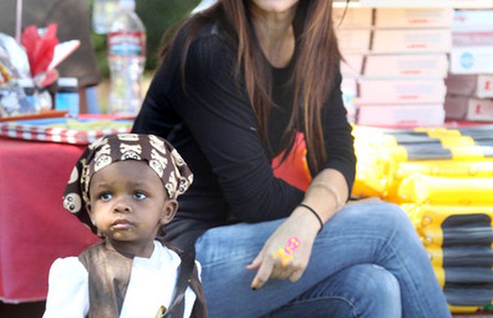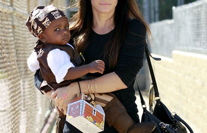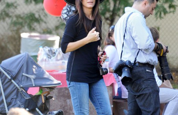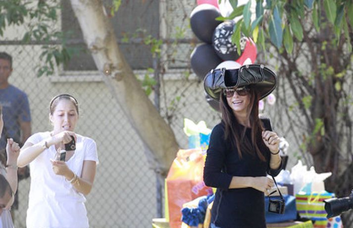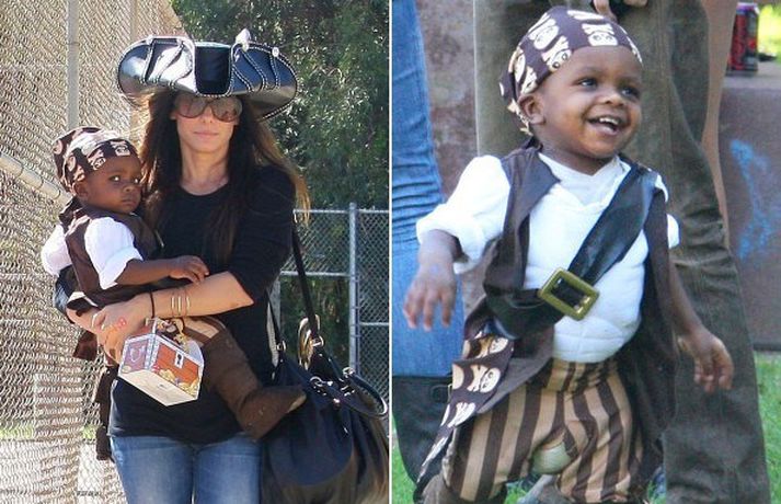 Leikkonan Sandra Bullock, 47 ára, og tveggja ára sonur hennar, Louis, voru klædd eins og sjóræningjar í barnaafmæli um helgina. Sandra, sem myndaði krúsídúlluna, var með stóran sjóræningjahatt á höfði eins og sjá má í myndasafni.Konur eru eins og ofnar. Við þurfum 5 til 15 mínútur til að hitna, lét leikkonan hafa eftir sér.