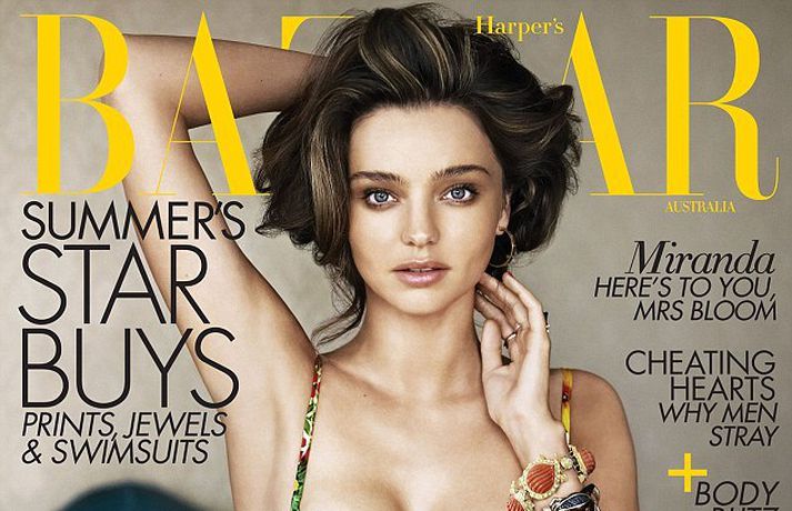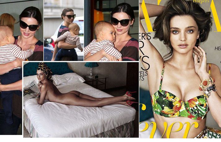 Eiginkona leikarans Orlando Bloom, Victoria's Secret fyrirsætan Miranda Kerr, 28 ára, sem eignaðist soninn Flynn, 6. janúar síðastliðinn, situr fyrir nakin í nóvember hefti ástralska Harper´s Bazaar . Eins og sjá má í myndasafni er Miranda með handklæði vafið um höfuðið, klædd í Dolce & Gabbana hælaskó, með nokkur armbönd kviknakin að lesa dagblað á hótelherbergi. Hann (Orlando Bloom) var við hlið mér allan tímann á fæðingardeildinni. Ég bannaði honum meira að segja að fara á klósettið... hann varð að pissa í flösku, segir Miranda í fyrrnefndu blaði spurð út í fæðingu sonar þeirra.