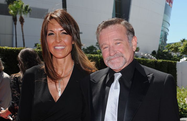 Good Morning Vietnam leikarinn Robin Williams, 60 ára, giftist grafíska hönnuðinum Susan Schneider síðasta sunnudag. Þetta er í þriðja sinn sem leikarinn giftist en hann á þrjú börn - Zachary, 28 ára, Zelda, 22 ára, og Cody, 19 ára. Robin og Susan kynntust árið 2009 stuttu eftir að hann gekkst undir hjartaaðgerð. Susan skrifaði eftirfarandi á Twitter síðuna sína daginn eftir að hún játaðist Robin: Fæturnir mínir eru gjörsamlega búnir á því. Nú er málið að liggja í baðkarinu, borða m&m og skrifa.