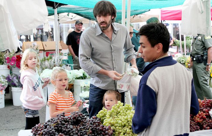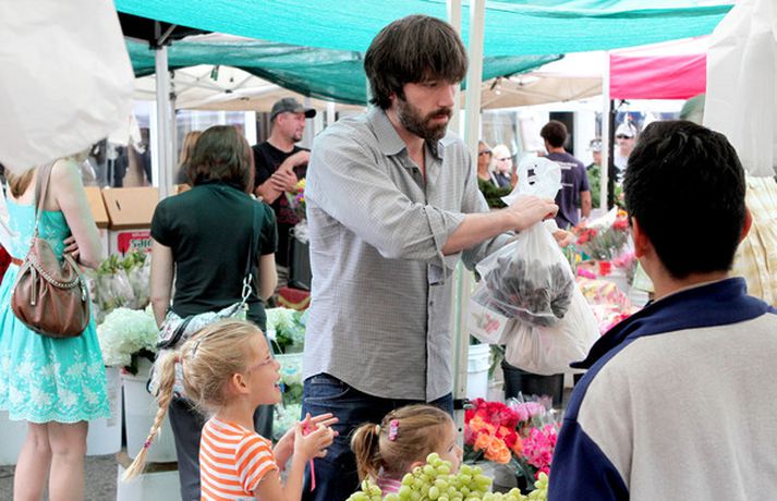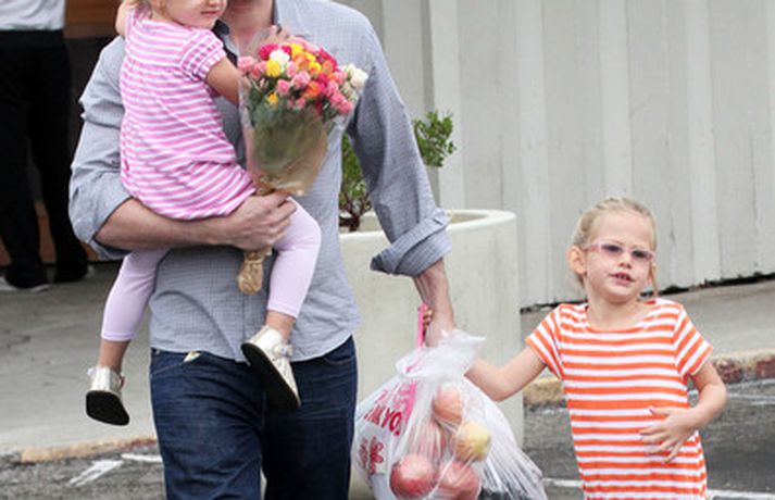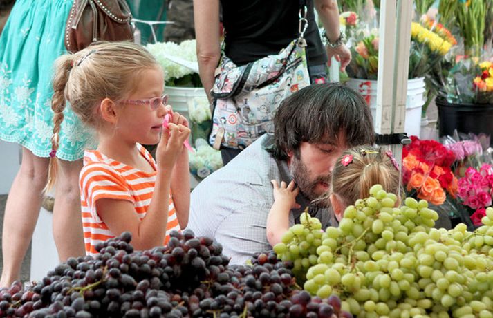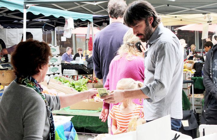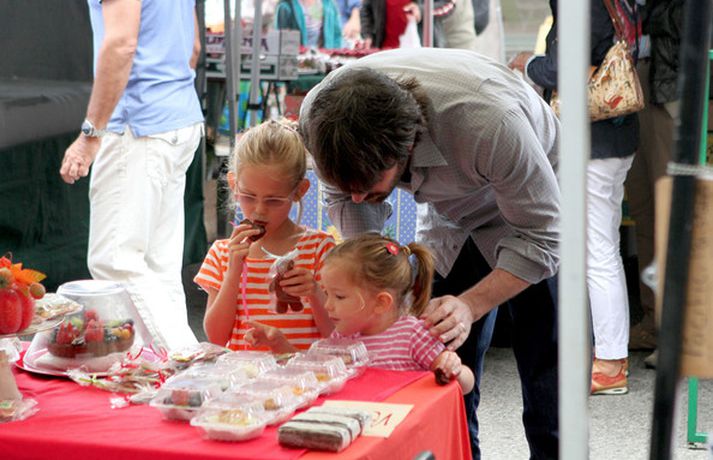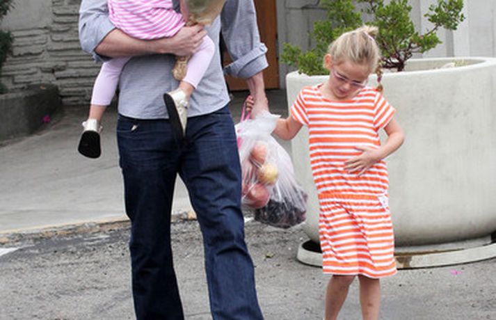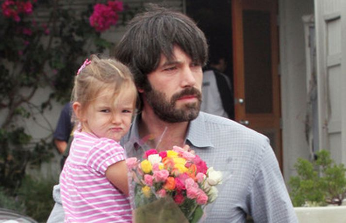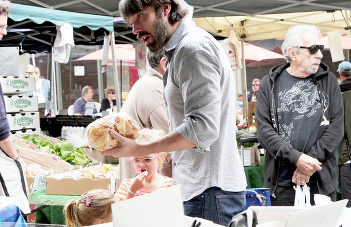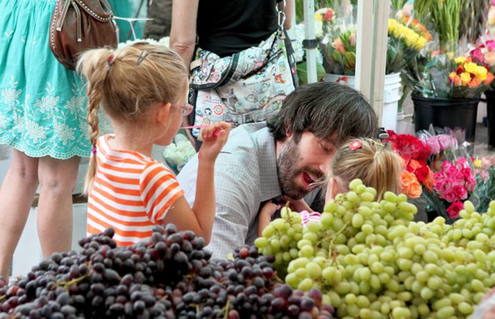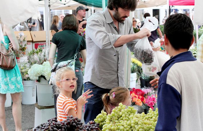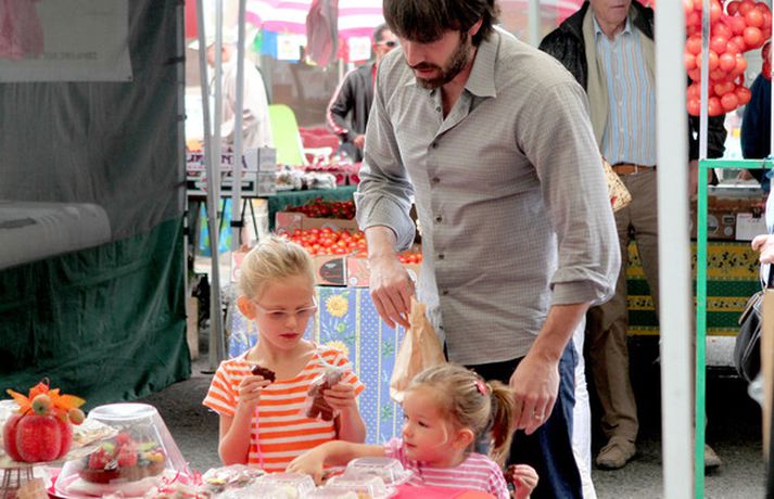 Leikarinn Ben Affleck, 39 ára, var myndaður með dætrum sínum Seraphinu og Violet á útimarkaði í Los Angeles í gærdag. Móðir stúlknanna, leikkonan Jennifer Garner, var fjarri góðu gamni en hún gengur með þriðja barnið þeirra.Það er fátt eins slæmt og að vera 13 ára drengur. Þú skammast þín fyrir foreldra þína og reynir að verða sjálfstæður en innst inni veistu að þú þarft svo innilega á mömmu þinni að halda, lét Ben hafa eftir sér.