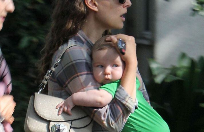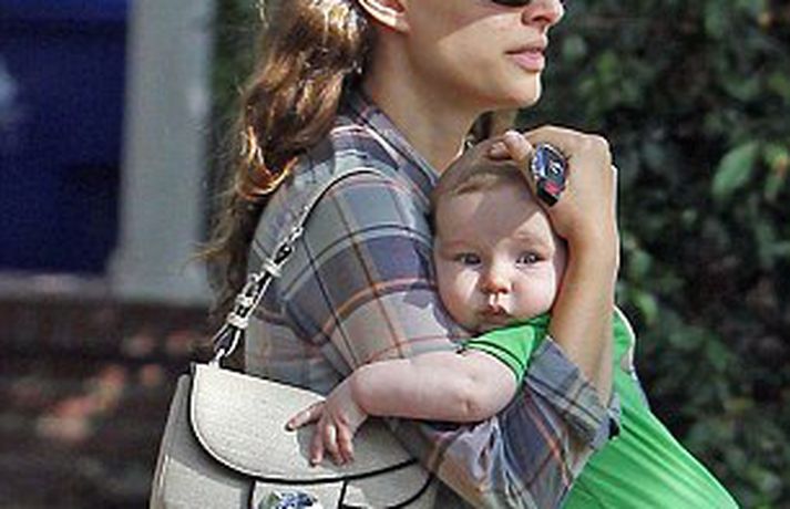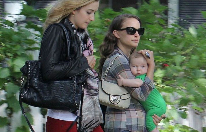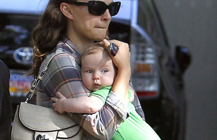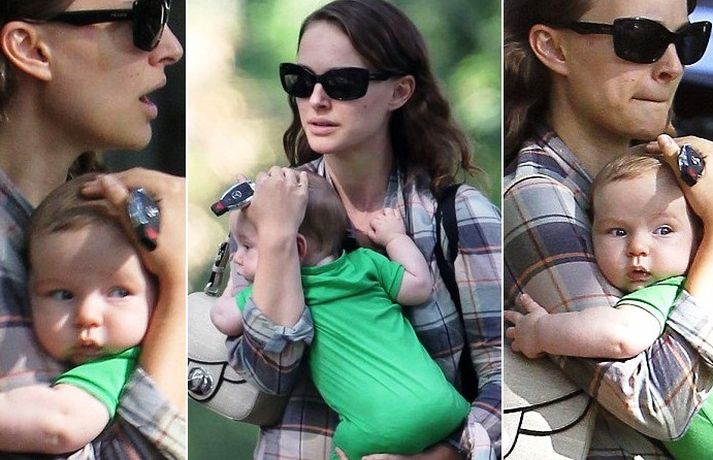 Óskarsverðlaunahafinn, Natalie Portman, 30 ára, hélt á 4 mánaða gömlum syni sínum, Aleph, þegar hún var á ferðinni í Los Angeles í gærdag. Skoða myndir hér. Natalie á drenginn með unnusta sínum, ísraelska balletdansaranum Benjamin Millepied. Þau kynntust við gerð kvikmyndarinnar The Black Swan í leikstjórn Darren Aronofsky.