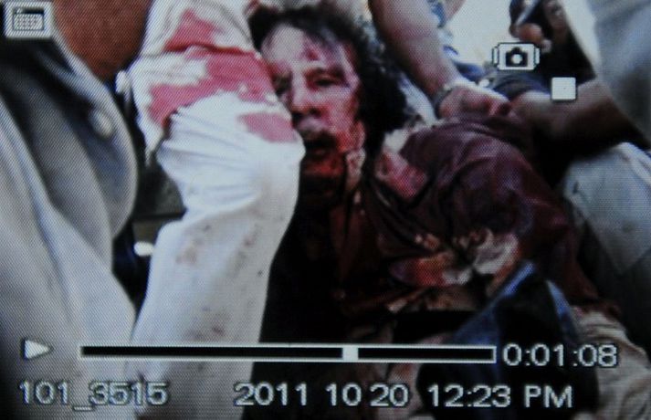 Leiðtogi uppreisnarmanna staðfestir fall Gaddafís 20. október 2011 15:44 Forsætisráðherra bráðabirgðarstjórnarinnar í Líbíu hefur nú staðfest að Múammar Gaddafí, einræðisherra landsins til fjörutíu ára, hafi verið skotinn til bana fyrir utan bæinn Sirte í dag. Mahmoud Jibril starfandi forsætisráðherra landsins hélt blaðamannafund í höfuðborginni Trípólí þar sem hann staðfesti fréttirnar og sagði hann um leið að nú væri tími til kominn að koma á fót nýrri sameinaðri Líbíu. Gaddafí reyndi að flýja frá borginni Sirte í morgun rétt áður en uppreisnarmenn náðu fullu valdi á borginni, sem hefur verið helsta vígi einræðisherrans fyrrverandi síðustu vikur. Herþotur NATO gerður árás á bílalestina sem hann var í og náðu uppreisnarmenn honum skammt frá. Myndir og myndbönd af líkinu hafa nú farið sem eldur í sinu um heiminn og fljótlega eftir að fréttir tóku að berast af falli einræðisherrans brutust út mikil fagnaðarlæti víðsvegar um Líbíu. Mest lesið Viðsnúningur og Helgi Bjartur færður bak við lás og slá Innlent Slapp óvænt við fangelsi og braut ítrekað á stjúpdóttur sinni Innlent Á batavegi eftir alvarlega líkamsárás á Höfða Innlent Vilja geta sett herlög á eyju norðan Íslands Erlent Vaktin: Mikilvæg fundarhöld í Washington Erlent Fékk afa sinn með sér á skólabekk Innlent Léttara yfir formanninum eftir þriggja tíma fund Innlent Stuðningur við Grænland ómetanlegur og hvetur Íslendinga til að mæta Erlent Tveir fulltrúar taka þátt í aukinni hernaðarviðveru Innlent Verðandi sendiherra grínaðist með að Ísland yrði 52. ríkið Erlent Fleiri fréttir Stuðningur við Grænland ómetanlegur og hvetur Íslendinga til að mæta Vilja geta sett herlög á eyju norðan Íslands Verðandi sendiherra grínaðist með að Ísland yrði 52. ríkið Síðustu ellefu ár þau hlýjustu í mælingasögunni 32 látnir eftir að krani féll á lest í Taílandi Rannsaka ásakanir á hendur Iglesias Sautján prósent Bandaríkjamanna styðja innlimun Grænlands Vaktin: Mikilvæg fundarhöld í Washington Tveir látnir eftir árekstur strætisvagna Reyna að tala Trump til og óttast afleiðingar árása Bandaríkjastjórn kemur barnaníðsefni Musk til varnar Mengunarreglur taka ekki lengur tillit til dauðsfalla og heilsu Starmer boðið sæti í „friðarstjórn“ Trump Trump segir Nielsen í vondum málum Trump heitir íhlutun ef stjórnvöld hefja aftökur Trump sýndi verkamanni puttann Keyptu tæki sem gæti útskýrt Havana-heilkennið Fundurinn í Washington gæti reynst örlagaríkur „Við veljum Danmörku“ Að minnsta kosti þrjú þúsund látnir í Íran Búa sig undir áhlaup um borð í skuggaskip Fá Andrés Önd til að bjarga læsi barna Borgin ber enga ábyrgð í Gufunesbruna og stjórnarmaður í Truenorth segir tjónið óbætanlegt Vance ætlar að sitja fundinn með Løkke og Rubio Farið yfir skandalinn í Minnesota: Vopnvæðir fjársvik til að refsa „bláum ríkjum“ Hótar Musk frekari sektum bregðist hann ekki við barnaníði Lögðu hald á tíu tonn af kókaíni nærri Kanaríeyjum Kynnir sér möguleika varðandi Íran og leggur toll á vinaríki klerkastjórnarinnar Machado heimsækir Hvíta húsið á fimmtudag Vara Evrópuríkin við því að taka á móti embættismönnum frá Taívan Sjá meira