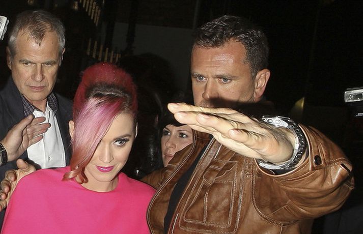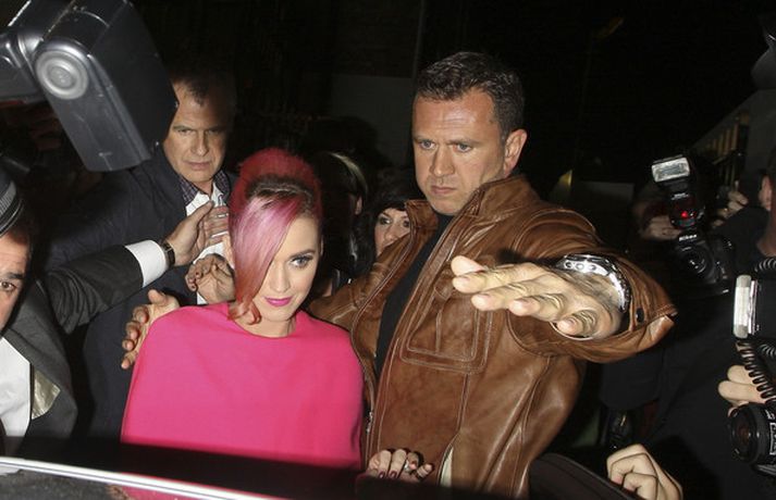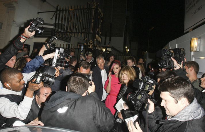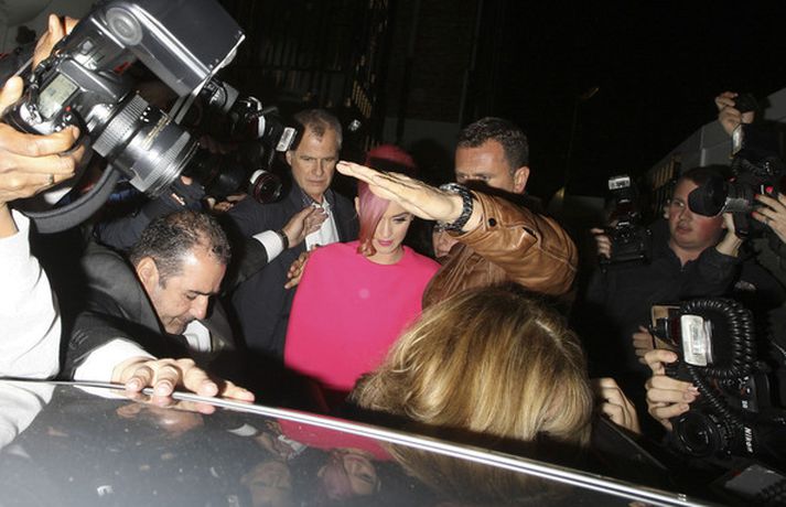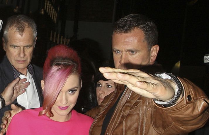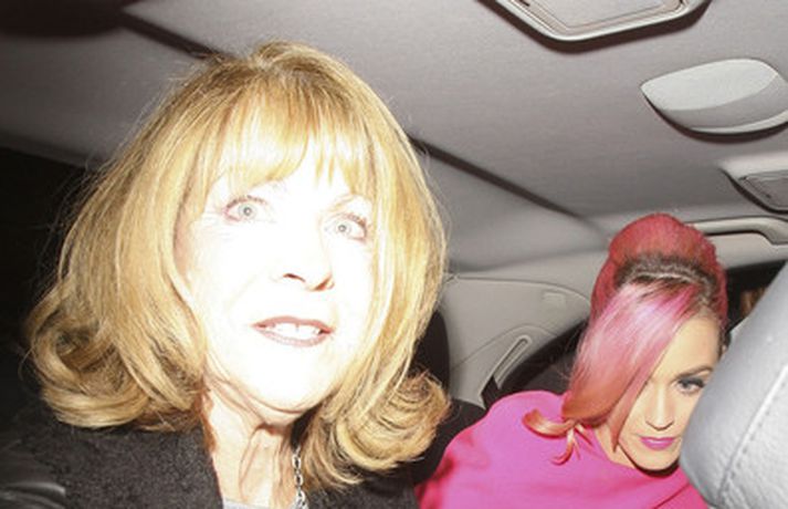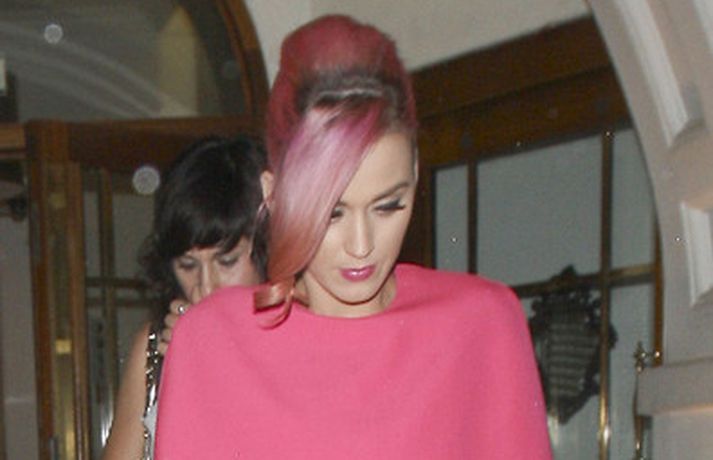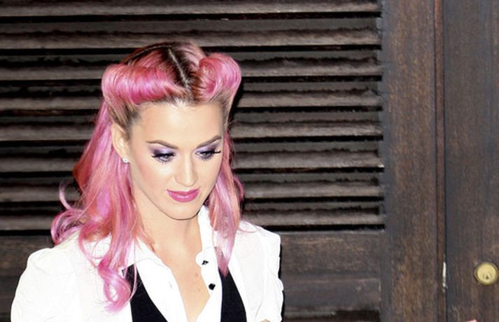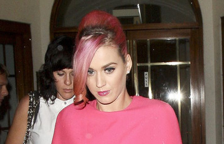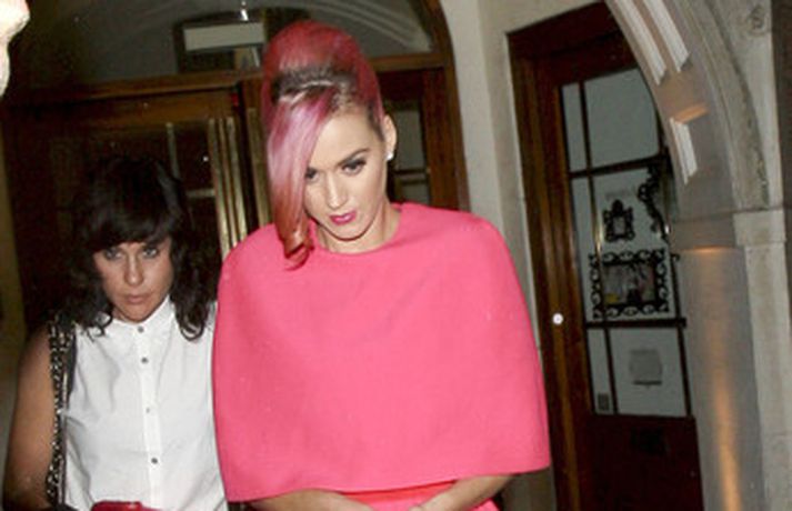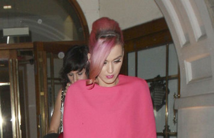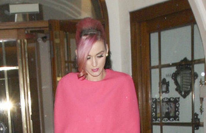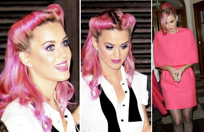 Söngkonan Katy Perry, 26 ára, var með bleikt hár þegar hún var mynduð með tengdamóður sinni, móður Russel Brand, yfirgefa leikhús í London í fyrradag. Þaðan fóru þær og snæddu á Nobu veitingahúsi í borginni. Það er þunn lína á milli þess að vera drusluleg til fara eða smart. Ég er einmitt þarna á línunni, sagði Katy. Þá má sjá Katy yfirgefa upptökuver þar sem X-factor þættirnir eru teknir upp.
