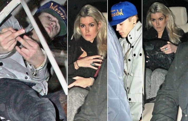 Justin Bieber var myndaður í London í gær ásamt ljóshærðri ónefndri stúlku. Selena Gomez unnusta hans var hvergi sjáanleg.Eins og sjá má á myndunum var Bieber brjálaður út í ljósmyndara sem mynduðu hann bak og fyrir. Bieber er þá ekki pabbinn eftir allt saman.