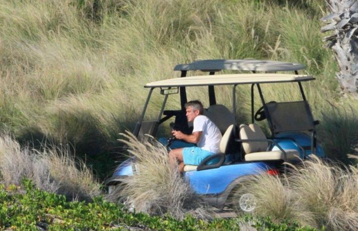 Leikaranum George Clooney, 50 ára, leiddist ekki á rauða dreglinum með nýju kærustunni, Stacy Keibler, 32 ára, í Beverly Hills á frumsýningu kvikmyndarinnar The Descendants í gærkvöldi eins og sjá má hér. Þá má einnig sjá myndir sem teknar voru af parinu í Los Cabos í Mexíkó í byrjun nóvember skrollandi um á golfbíl. Stacy var klædd í Naeem Khan* kjól sem fór henni þetta líka svona rosalega vel.*Sjá vorlínu 2012 Naeem Khan hér.