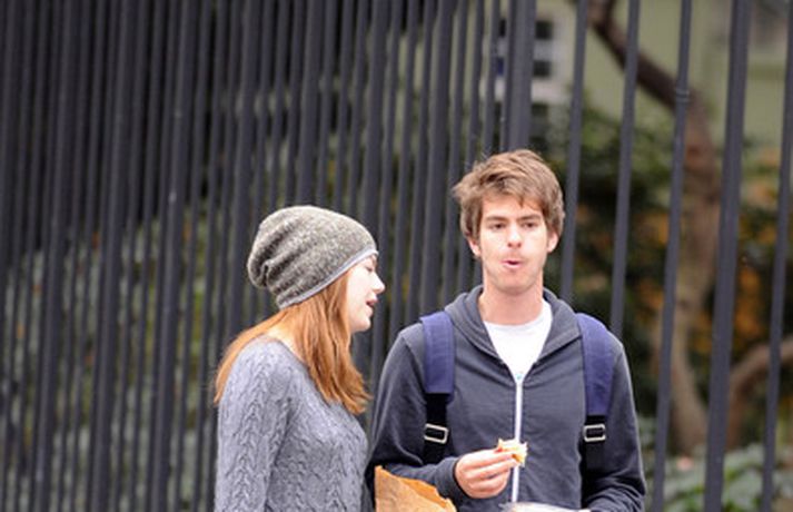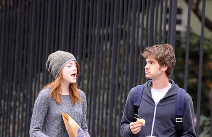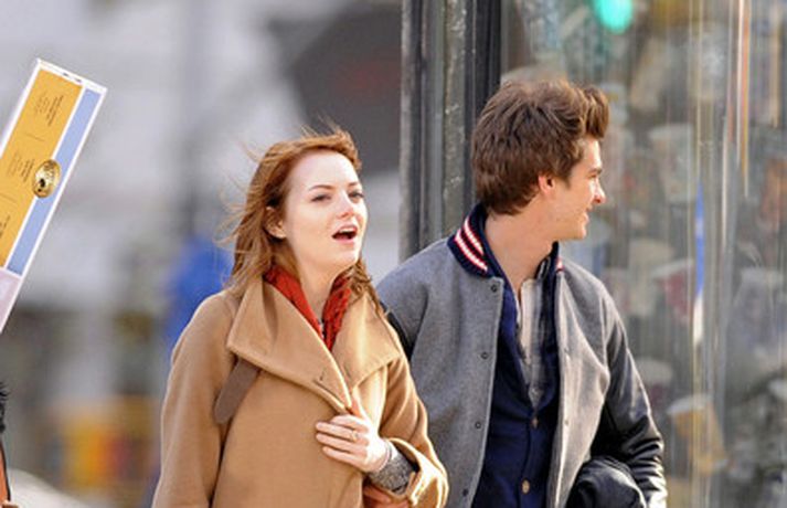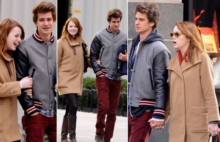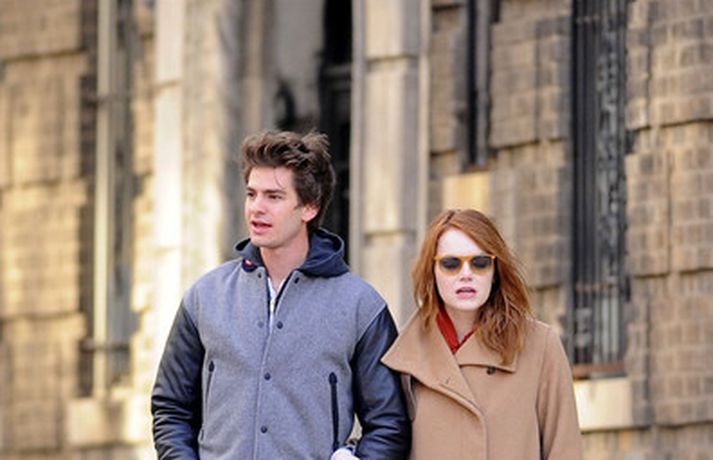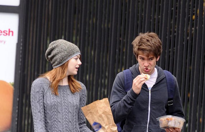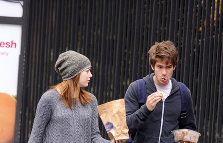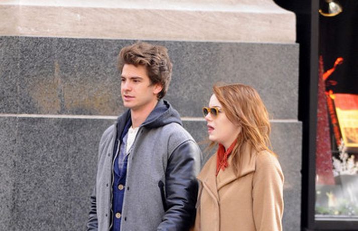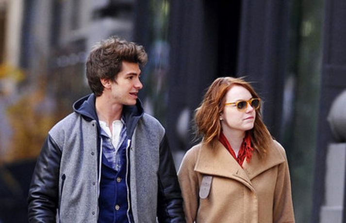 Leikkonan Emma Stone, 23 ára, sem sló í gegn í myndinni The Help og unnusti hennar, leikarinn Andrew Garfield, 28 ára, voru mynduð leiðast um götur New York borgar eins og sjá má hér.Þegar ég var 14 ára gömul gerði ég PowerPoint kynningu fyrir foreldra mína. Ég bauð þeim í herbergið mitt og gaf þeim poppkorn á meðan ég leiddi þau í gegnum kynninguna sem gekk út á hugmyndina að við myndum flytja til Hollywood. Hún virkaði því stuttu seinna fluttum við til Los Angeles, sagði Emma.