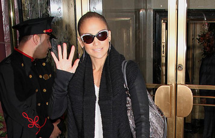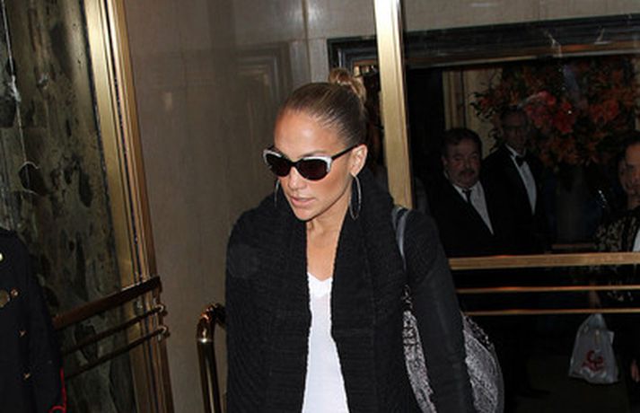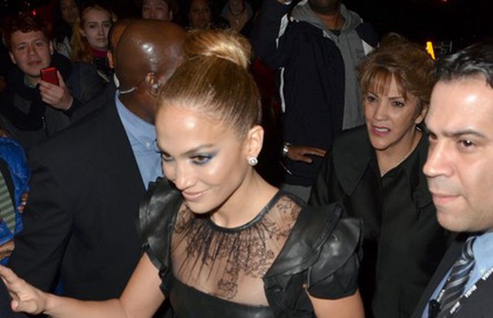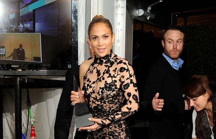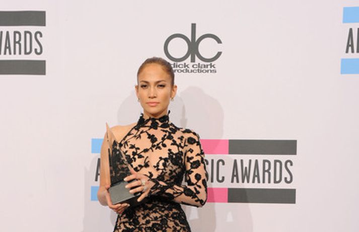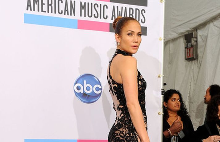 Söng- og leikkonan Jennifer Lopez, 42 ára, stillti sér upp á rauða dreglinum á tónlistarverðlaunahátíð í Los Angeles í gær með hárið tekið aftur klædd í síðan vel þröngan blúndukjól sem fór henni þetta líka svona vel. Jennifer söng lögin Papi og On the Floor ásamt því að hljóta verðlaunagrip. Þá má einnig sjá söngkonuna yfirgefa hótel í New York með tvíburana sína og lífverði í myndasafni.Hér má sjá Jennifer á sviði fyrr um kvöldið.