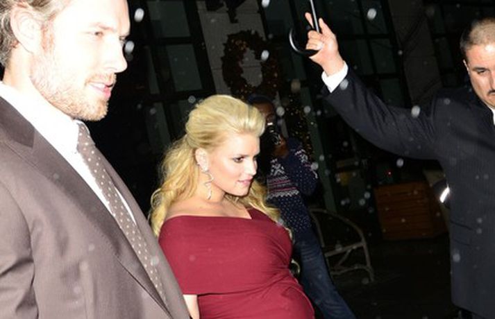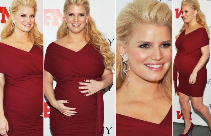 Söngkonan Jessica Simpson, 31 árs, stillti sér upp á rauða dreglinum í Donna Karan kjól og YSL skóm í New York í gær ásamt unnusta sínum, Eric Johnson.Ó barnið er að sparka! sagði Jessica og strauk á sér bumbuna eins og myndirnar sýna greinilega.Óléttar konur eru sagðar glóa svo fallega en ég held að það sé af því að við svitnum svo mikið, lét hún hafa eftir sér í viðtali við People tímaritið.Dragðu Tarot spil fyrir daginn!