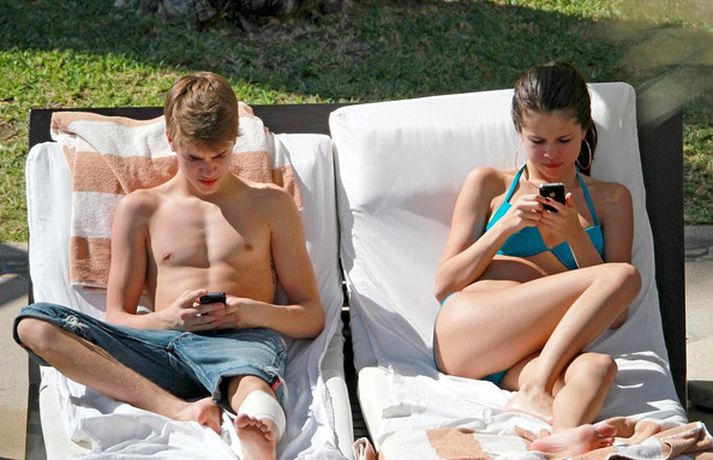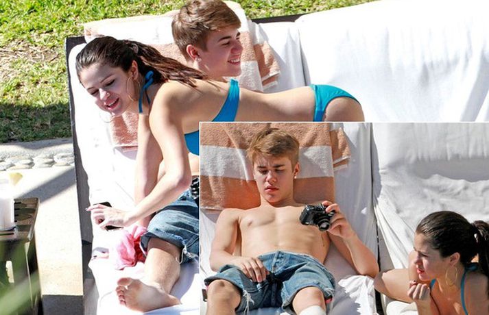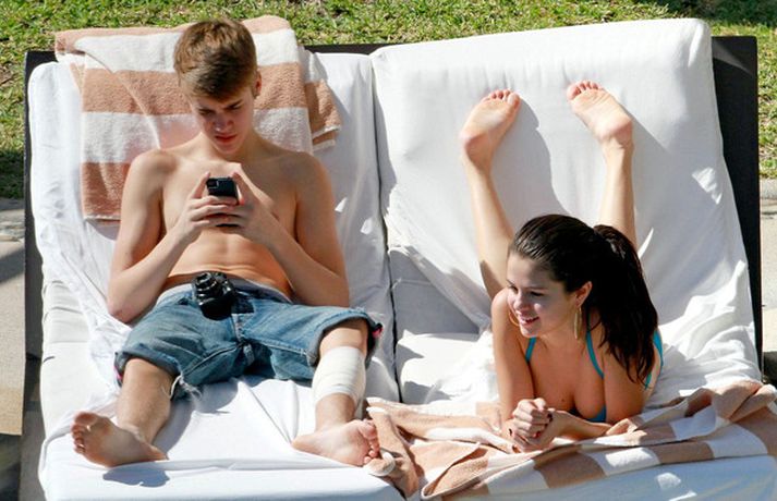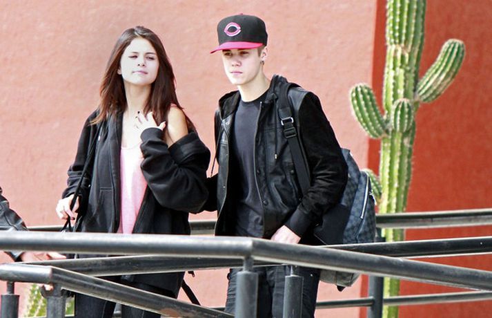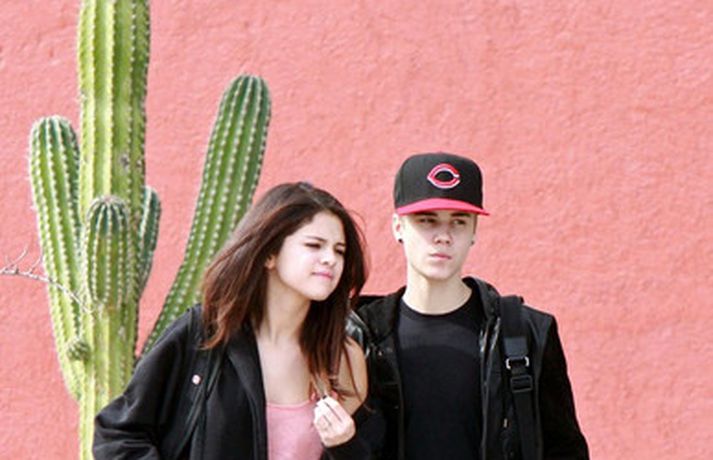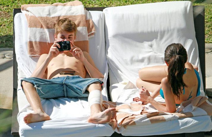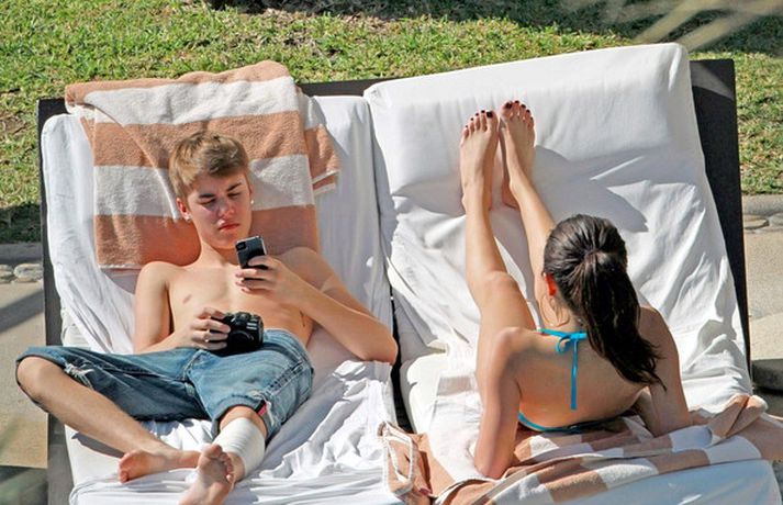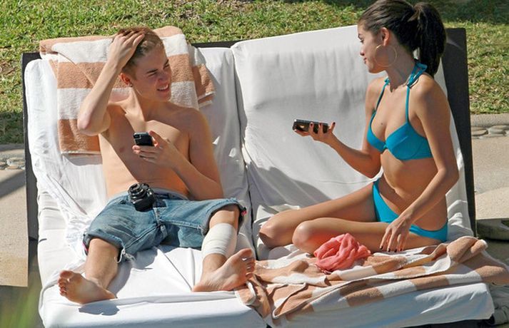 Kanadíski söngvarinn Justin Bieber, 17 ára, sleikti sólina í Los Cabos í Mexíkó með kærustunni sinni, Selenu Gomez, 19 ára, eins og sjá má á myndunum. Slúðurmiðlar vestan hafs velta sér endalaust upp úr því hvort hringur sem Selena setti nýverið upp sé trúlofunarhringur en ekkert hefur verið staðfest í þeim efnum. Parið naut samverunnar á milli þess sem Justin tók myndir og sendi sms. - Skoða myndir hér.