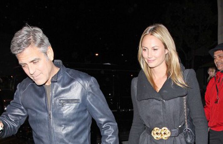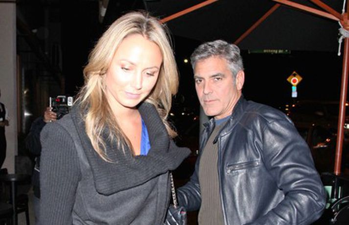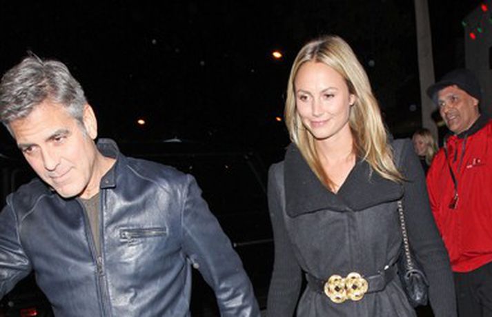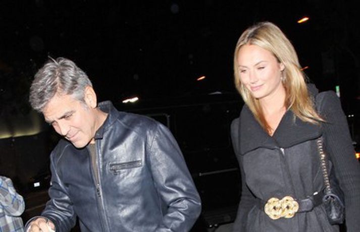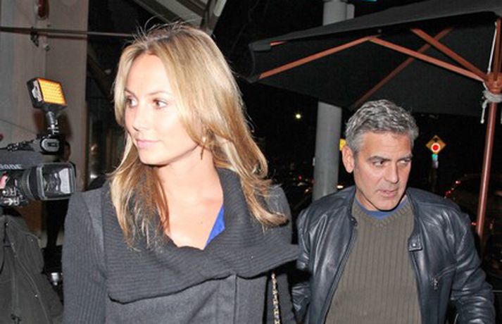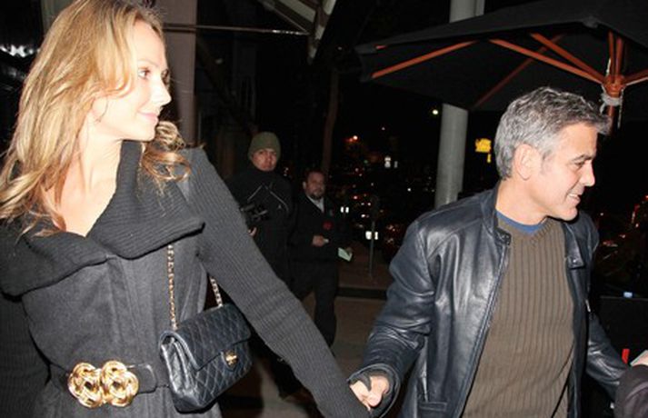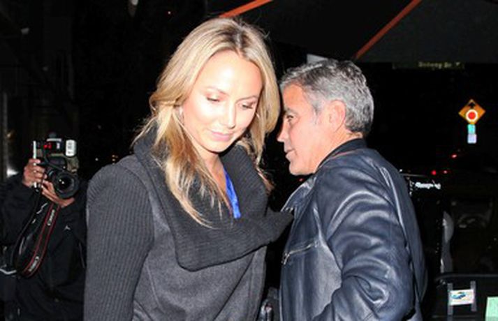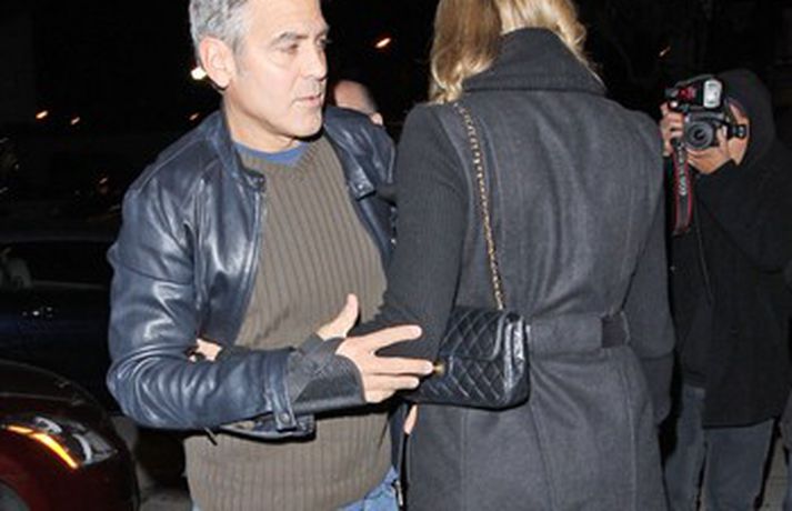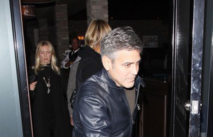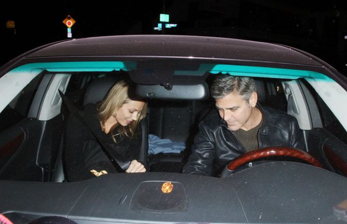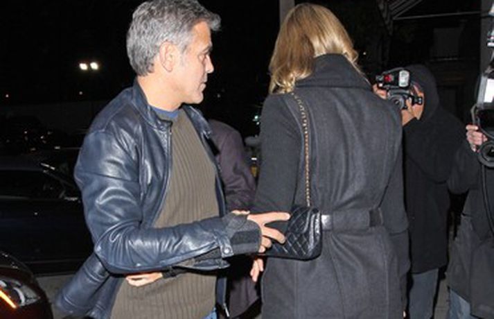 Leikarinn George Clooney, 50 ára, leiddi unnustu sína, Stacy Keibler, 32 ára, þegar þau yfirgáfu veitingahús í Hollywood í gærkvöldi. Eins og sjá má í myndasafni flýttu þau sér í bílinn sem var lagður skammt frá veitingastaðnum til að flýja ljósmyndarana sem biðu eftir þeim fyrir utan.Tarot á Vísi.