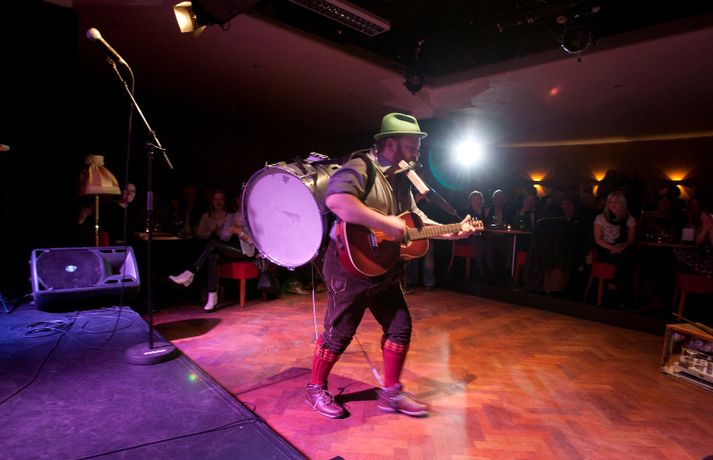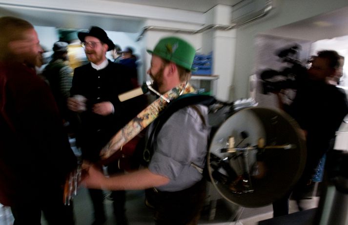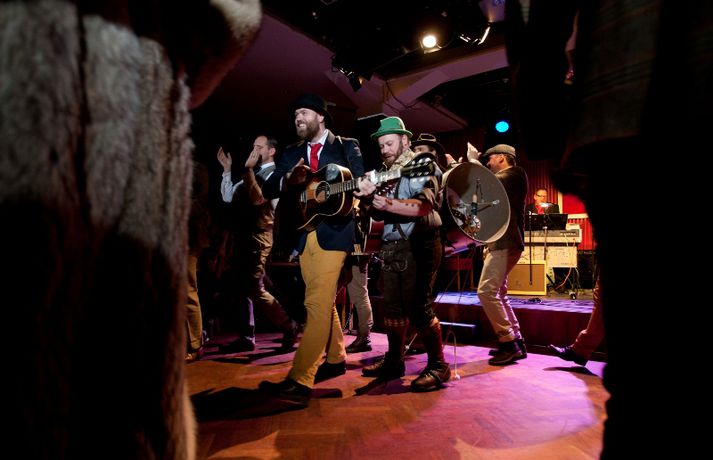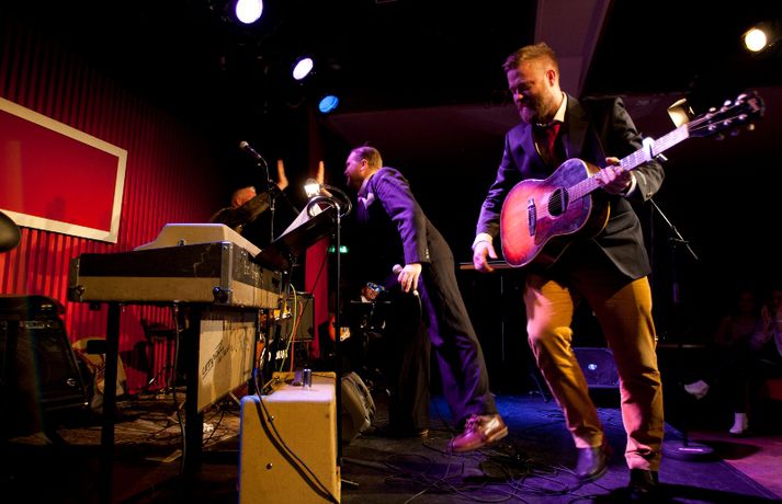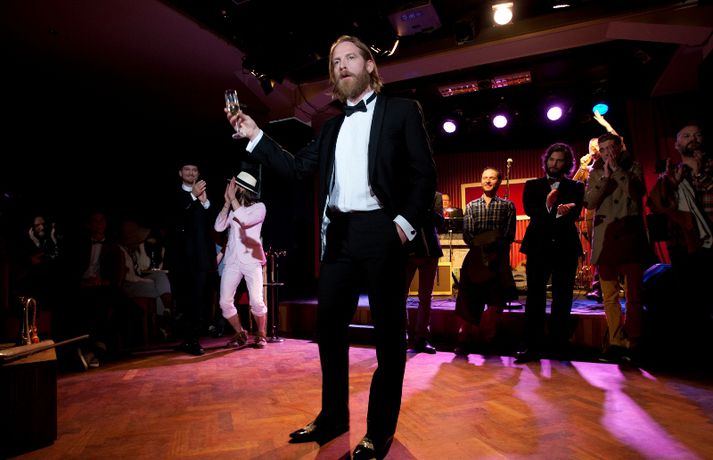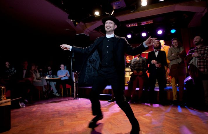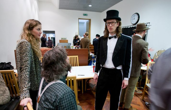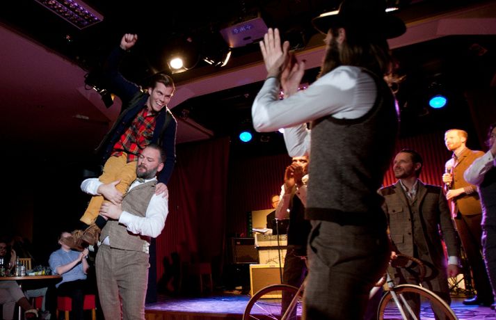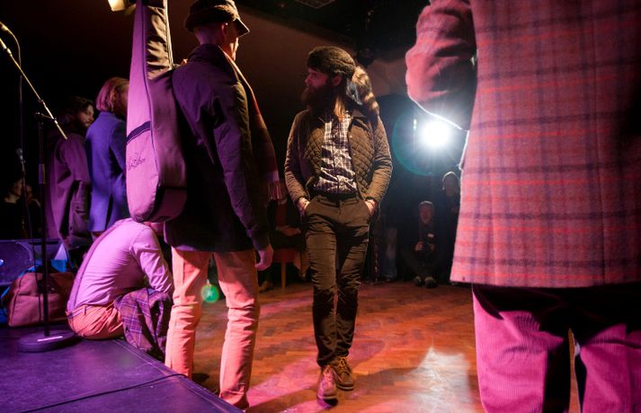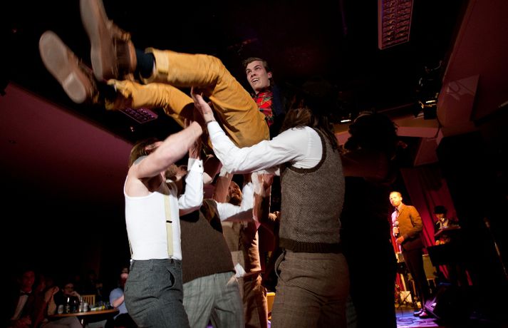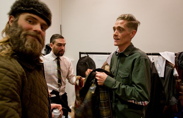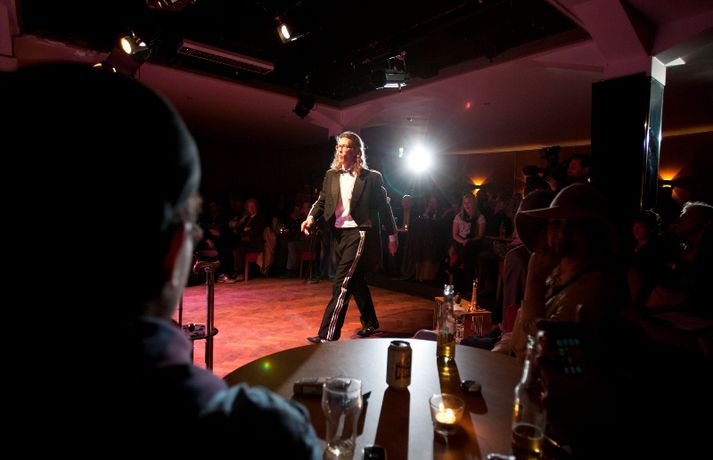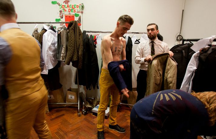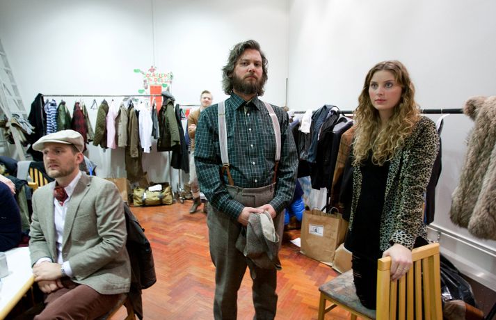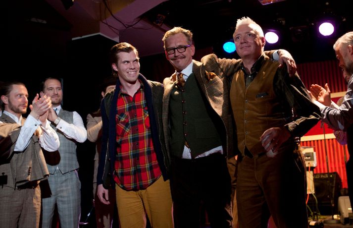 Ný fatalína Herrafataverzlunar Kormáks & Skjaldar var frumsýnd í Þjóðleikhúskjallaranum í gærkvöldi fyrir fullu húsi. Það vantaði ekki stjörnurnar sem tróðu upp á sýningunni, sem var með öðru sniði en venjuleg tískusýning. Um eiginlegt skemmtikvöld var að ræða. Vel þekktir tónlistarmenn, leikarar og snyrtipinnar voru meðal fyrirsæta, auk þess sem listamenn á borð við Mugison, Ragnar Kjartansson og fleiri tróðu upp á milli fatasýninganna. Línan er hönnuð af Guðmundi Jörundssyni, yfirhönnuði verslunarinnar. Línan er óbeint framhald þeirrar er frumsýnd var í fyrra en inniheldur þó ný snið og önnur efni. „Efnin eru aðeins dempaðri og sniðin svolítið flippaðri en báðar innihalda línurnar buxur, vesti og jakka," útskýrir Guðmundur. Um tíu fyrirsætur tóku þátt í sýningunni og sýndu þær alls fimmtíu heildarklæðnaði, bæði nýju línuna og fatnað úr Herrafataverzluninni. Árni Torfason ljósmyndari myndaði kvöldið og er hægt að skoða afraksturinn í meðfylgjandi myndasafni. Smellið á myndina til að fletta myndasafninu.