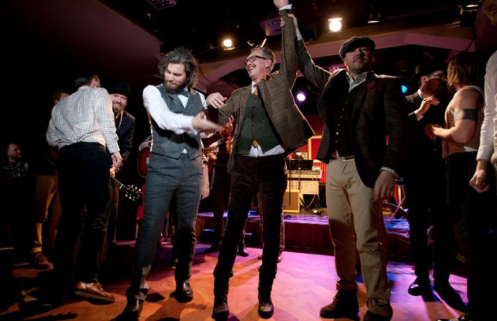 Fögnuðu gríðarlega í lok vel heppnaðrar sýningar 1. desember 2011 15:30 Fyrirsæturnar tóku Guðmund Jörundsson hönnuð traustataki í lok sýningar. Myndir/Árni Torfason Ný fatalína Herrafataverzlunar Kormáks & Skjaldar var frumsýnd í Þjóðleikhúskjallaranum í gærkvöldi fyrir fullu húsi. Það vantaði ekki stjörnurnar sem tróðu upp á sýningunni, sem var með öðru sniði en venjuleg tískusýning. Um eiginlegt skemmtikvöld var að ræða. Vel þekktir tónlistarmenn, leikarar og snyrtipinnar voru meðal fyrirsæta, auk þess sem listamenn á borð við Mugison, Ragnar Kjartansson og fleiri tróðu upp á milli fatasýninganna. Línan er hönnuð af Guðmundi Jörundssyni, yfirhönnuði verslunarinnar. Línan er óbeint framhald þeirrar er frumsýnd var í fyrra en inniheldur þó ný snið og önnur efni. „Efnin eru aðeins dempaðri og sniðin svolítið flippaðri en báðar innihalda línurnar buxur, vesti og jakka," útskýrir Guðmundur. Um tíu fyrirsætur tóku þátt í sýningunni og sýndu þær alls fimmtíu heildarklæðnaði, bæði nýju línuna og fatnað úr Herrafataverzluninni. Árni Torfason ljósmyndari myndaði kvöldið og er hægt að skoða afraksturinn í meðfylgjandi myndasafni. Smellið á myndina til að fletta myndasafninu. Mest lesið Sat uppi með sex kíló af kæstri skötu Lífið Jólagjafir íslenskra vinnustaða Lífið Óléttan uppgötvaðist þremur dögum fyrir byrjun skólans Menning Segir son sinn ekki hafa þurft að deyja Lífið Þessi smurðu mest á reikning Jommunnar Lífið Kristmundur Axel tók við af Bubba Lífið „Fyrri kona mannsins míns er með Parkinson, ekki ég“ Áskorun Seinfeld og Friends-leikari látinn Lífið Michelle Trachtenberg er látin Lífið Laufey á landinu Lífið Fleiri fréttir Viðtöl ársins 2025: Missir, afsögn ráðherra, umsáturseinelti og læknir sem þóttist vera með krabbamein Sat uppi með sex kíló af kæstri skötu Kristmundur Axel tók við af Bubba Seinfeld og Friends-leikari látinn Jólagjafir íslenskra vinnustaða Deildar meiningar um lyktina: „Þetta er byrjendaskata“ Fréttamenn gæða sér á skötu í gegnum árin Laufey á landinu Þar sem vinsælustu lög landsins verða til Þessi smurðu mest á reikning Jommunnar Einhverfir kaþólikkar um allan heim heita Þorlákur Cooper bað móðurina um hönd Hadid „Mér finnst gaman að láta sjokkera mig“ Brúðkaup ársins 2025 Heitt í hamsi hjá gestum á „helvíti á jörðu“ í Breiðholti Chris Rea hefur ekið heim um jólin í síðasta skipti Saga jarðaði alla við borðið Vísa ásökunum Skinner um kosningasvindl á bug Kimmel ávarpar bresku þjóðina: Frábært ár fyrir fasisma „Ég hugsa til þín á hverjum einasta degi“ Stjörnulífið: Óskar tíkunum gleðilegra jóla Veikindi eyðilögðu líka stóru stund Manúelu Hefur misst vini og kunningja vegna skoðana sinna Leitin á Svínafellsjökli sem hefur enn ekki skilað árangri Krakkatía vikunnar: Ísskápastríð, Eivör og Grafarvogur „Við byrjuðum að hlusta á jólalög í júlí“ Frægir fundu ástina 2025 Íslenska stelpan sem gerðist mormóni Fréttatía vikunnar: Rob Reiner, Dóra Björt og fullir unglingar 500 Esjuferðir á árinu: „Sumir hrista bara hausinn og lygna augunum“ Sjá meira
