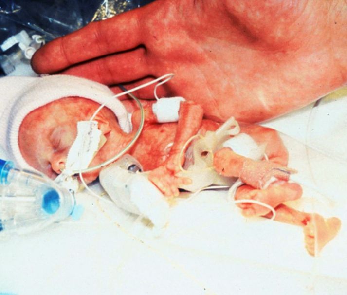 Einn minnsti fyrirburi veraldar kom öllum á óvart 12. desember 2011 22:00 Nýleg mynd af Madeline Mann. mynd/AP Hin 22 ára gamla Madeline Mann er búsett í Illinois-fylki í Bandaríkjunum. Hún er heiðursnemandi við háskólann í Augustana. Hún fæddist í júní árið 1989 - hún var minnsti fyrirburi veraldar. Madeline var rúmlega 280 grömm að þyngd þegar hún fæddist og passaði ágætlega í meðalstórann lófa. Meðgöngualdur hennar var 27 vikur. Lungu hennar og önnur líffæri voru ekki nógu þroskuð til að starfa. Madeline þurfti að vera í öndunarvél í tvo mánuði og var í fjóra mánuði á spítalanum. Slangan sem komið var fyrir í barka Madeline var þynnri en spagettístöng. Hún var tekin með keisarskurði því móðir hennar þjáðist af meðgöngueitrun en sjúkdómurinn einkennist af afar háum blóðþrýstingi. Það blæddi lítillega inn á heila Madeline en það er algengt hjá fyrirburum. Blæðingin virðist ekki hafa haft nein áhrif á hana.Myndin var tekin stuttu eftir fæðingu Madeline.mynd/APDr. Jonathan Muraskas hjá Háskólasjúkrahúsinu í Maywood í Illionois segir að tilfelli Madeline vera afar sérstakt og að það sé í raun óútskýranlegt hversu vel henni hefur gengið. Madeline heilsast vel í dag. Hún þjáist af astma og er fíngerð - hún er tæpir 150 sentimetrar og rúmlega 30 kíló að þyngd. Jim Mann, faðir Madeline, segir það hafa verið ógnvænlegt að eignast svo litla dóttur. En þegar árin liðu varð ljóst að Madeline ætti eftir að heilsast vel. Jim segir að erfiðast sé að velja föt á dóttur sína - enda sé hún smávaxin. Hann sagðist bæði furða sig á árangri dóttur sinnar ásamt því að vera stoltur. Madeline er nú að læra sálfræði við háskólann í Augustana og er fullkomlega eðlilegur, smávaxinn, einstaklingur. Mest lesið Hrindir af stað söfnun fyrir móður stúlkunnar sem lést í Suður-Afríku Innlent Breiddi út faðminn fyrir rasista: „Þið þurfið ekki að biðjast afsökunar á að vera hvít lengur“ Erlent Sprengdu rússneskan hershöfðingja í loft upp í Moskvu Erlent „Þetta hefur verið þungur tími“ Innlent Undirbúningur árásarinnar stóð yfir í marga mánuði Erlent Naut aðstoðar samskiptasérfræðinga vegna veiðigjaldamálsins Innlent Trump skipar sendifulltrúa fyrir Grænland Erlent Málið sem Trump getur ekki losað sig við Erlent Varð vitni að ótrúlegum norðurljósum: „Mér fannst þetta magnað“ Innlent „Ég vil ekki nokkurn tímann sjá neitt svona aftur“ Innlent Fleiri fréttir Breiddi út faðminn fyrir rasista: „Þið þurfið ekki að biðjast afsökunar á að vera hvít lengur“ Sprengdu rússneskan hershöfðingja í loft upp í Moskvu Undirbúningur árásarinnar stóð yfir í marga mánuði Trump skipar sendifulltrúa fyrir Grænland Segir unnið að því að móta sameiginlega nálgun Bandaríkjanna, Úkraínu og Evrópu Sýknaður af nauðgun eftir að hafa verið skimaður fyrir sjaldgæfri svefnröskun Málið sem Trump getur ekki losað sig við Grunaður um manndráp eftir að tveggja ára drengur féll úr blokk Fóru um borð í vélvana rússneskt skip Baulað á Albanese á minningarathöfn á Bondi-strönd Kvarta yfir ritskoðun Epstein-skjala: „Við vitum ekki hvað við vitum ekki“ Níu skotnir til bana á krá Sextán ára fékk greitt fyrir að færa Epstein stúlkur Ljósmyndir horfnar úr Epstein-skjölunum, þar á meðal ein af Trump Vilja dauðarefsingu af borðinu vegna hagsmunaáreksturs ráðherra Pútín sagður hafa valið Witkoff Gerðu umfangsmiklar árásir gegn ISIS í Sýrlandi Það helsta úr fyrsta skammti Epstein-skjalanna Epstein-skjölin birt Draga tilvist neðanjarðarhafs á Títan í efa Réðust á skip úr skuggaflotanum þúsundir kílómetra frá Úkraínu Enn fleiri myndir úr safni Epsteins: „En hún vill þúsund dali fyrir hverja stúlku“ Trump vill til tunglsins fyrir 2028 Herða reglur og ráðast í endurkaup á skotvopnum Morðinginn í Brown háskóla fannst látinn Evrópa samþykkir 90 milljarða evra lán til Úkraínu Rannsaka tengsl skotárásarinnar við annað morð Sex um borð í einkaþotu sem hrapaði Beita dómara ICC refsiaðgerðum vegna Ísrael Taka á kvenfyrirlitningu með sérstöku námskeiði fyrir drengi Sjá meira