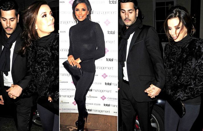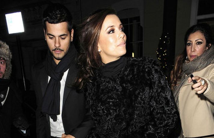 Leikkonan Eva Longoria, 36 ára, var brosmild og svartklædd þegar hún leiddi sykursæta unnusta sinn, Eduardo Cruz, 25 ára, um götur Lundúna í gær eins og sjá má á myndunum. Eduardo, sem er bróðir leikkonunnar Penelope Cruz, lét húðflúra nafn Evu á handlegginn á sér fyrir ekki alls löngu.Dragðu Tarot-spil fyrir daginn!