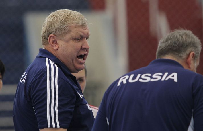 Pjetur Sigurðsson, ljósmyndari Vísis og Fréttablaðsins, fylgdist vel með þjálfara rússneska landsliðsins, hinum skrautlega Evgeny Trefilov, í leik Íslands og Rússlands í dag. Trefilov er vægast sagt líflegur á hliðarlínunni en hann virðist nánast undantekningarlaust öskureiður út í sína leikmenn, hvort sem þeim gengur vel eða ekki. Það sama var upp á teningnum í dag og þegar íslenska liðinu gekk sem best í fyrri hálfleik lét Trefilov leikmenn sína heyra það óspart. Hér fyrir neðan má sjá myndasyrpu Pjeturs af kappanum.Mynd/Pjetur
