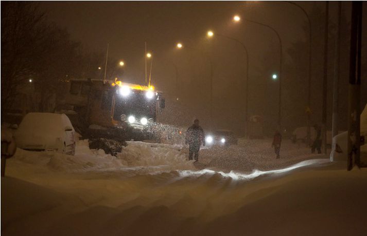 Aldrei snjóað jafn mikið á einum degi í desember 29. desember 2011 11:12 Snjómet slegið. Þeir sem muna ekki eftir annarri eins snjókomu í desember, hafa á réttu að standa, en samkvæmt upplýsingum frá Veðurstofu Íslands mældist snjódýptin í morgun 33 sentímetrar. Það er semsagt met. Það hefur aldrei snjóað jafn mikið á einum degi í desember frá því mælingar hófust árið 1921. Veðurstofan spáir éljagangi áfram í dag. Á morgun breytist veðrið hinsvegar nokkuð. Það mun snjóa til að byrja með, svo verður slydda og að lokum fer að rigna seinni partinn á föstudaginn. Svo er búist við því að það hlýni nokkuð. Þannig ættu allar tölur að vera rauðar á láglendi Íslands á gamlársdag. Fleiri veðurmet hafa verið slegin í desember. Snjór hefur nú legið yfir höfuðborgarsvæðinu og nágrenni þess samfleytt frá 26. nóvember. Aldrei áður frá upphafi mælinga hefur snjór verið samfleytt svo lengi á fyrri hluta vetrar. Eins og fram hefur komið hafa björgunarsveitamenn staðið í stórræðum í nótt og í morgun og hér að neðan má sjá myndir frá starfi þeirra. Mest lesið Piltur skilinn eftir ber að ofan og skólaus eftir hrottafengna árás Innlent Engir ælupokar notaðir, þetta var núllpokaflug Innlent Dæmdur fyrir líkamsárás í matsalnum Innlent Hafði komið sér fyrir á háalofti hótels Innlent Tap upp á 130 milljónir og neikvætt eigið fé upp á aðrar 26 Innlent Þau kvöddu á árinu 2025 Erlent Töpuðu tæpum hundrað milljónum Innlent Fyrirskipaði árásir á „hryðjuverkaúrhrök“ í Nígeríu Erlent Kuldaskil á leið yfir landið Veður Komst ekki á toppinn og bótakröfunni hafnað Neytendur Fleiri fréttir Piltur skilinn eftir ber að ofan og skólaus eftir hrottafengna árás Dæmdur fyrir líkamsárás í matsalnum Engir ælupokar notaðir, þetta var núllpokaflug Hafði komið sér fyrir á háalofti hótels Tap upp á 130 milljónir og neikvætt eigið fé upp á aðrar 26 Umferðin róleg í kirkjugörðunum Töpuðu tæpum hundrað milljónum Milljónir í sekt fyrir að bakka á konu Þörf á að skerpa á verklagi spítalans í heimilisofbeldismálum Engin jólamessa vegna rafmagnsleysis Klæðning fauk af Stjórnsýsluhúsinu og skemmdi bíla Gleðileg jól, kæru lesendur Einn fluttur á sjúkrahús eftir bílslys Skiluðu hagnaði á kosningaári Hátíðarveisla á kaffistofu Samhjálpar: „Það er ró og friður yfir fólki“ Björgunarsveitin kölluð út í fokverkefni Grjóthrun undir Eyjafjöllum Fátækari eftir að hafa svindlað á ferðakonum Arion banki varar við svikaherferð Innanlandsflugi aflýst Foreldrar skipverjans fá áheyrn í Hæstarétti Hvar er opið á aðfangadag? Innflytjendamálin almenningi efst í huga Bæta við allt að 200 íbúðum og mathöll í Spöngina Maður í umferðarslysi reyndist fíkniefnasali Minni rekstrarkostnaður fyrir eigendur bensínháka Hafnar „jólakveðju“ ríkisins Hefði þurft hjólbörur undir öll verðlaunin sín Ýmis ráð til taugatrekktra á Þorláksmessu Ekkert því til fyrirstöðu að Ásthildur Lóa verði aftur ráðherra Sjá meira