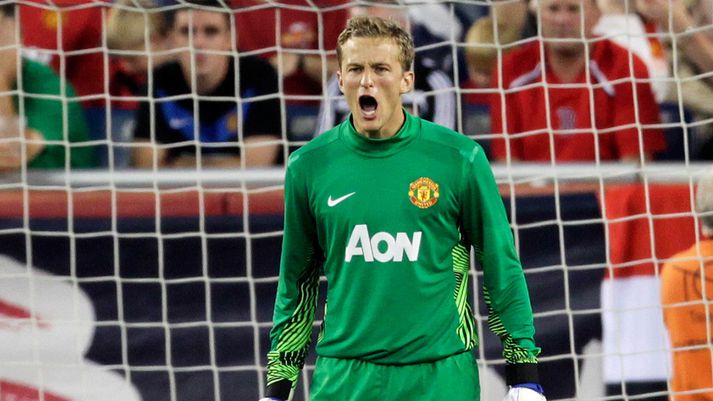 Lindegaard búinn að halda fimm sinnum hreinum í sex leikjum Óskar Ófeigur Jónsson skrifar 25. desember 2011 21:00 Anders Lindegaard. Mynd/Nordic Photos/Getty Danski markvörðurinn Anders Lindegaard er heldur betur búinn að minna á sig í baráttunni um markvarðarstöðuna í Manchester United því hann er búinn að halda hreinu í fimm leikjum í röð og hefur aðeins fengið á sig eitt mark í sex leikjum í ensku úrvalsdeildinni og Meistaradeildinni á þessu tímabili. Anders Lindegaard stóð síðast í marki Manchester United í 5-0 sigrinum á Fulham í vikunni og nú er stóra spurningin hvort að hann eigi möguleika á því að slá út Spánverjann David De Gea. „Ég vona að ég sé búinn að skapa vandamál fyrir stjórann," sagði Anders Lindegaard í viðtali á heimasíðu Manchester United. „Það man enginn eftir einstökum markvörslum eftir tíu leiki og þá skiptir bara tölfræðin máli. Ég er búinn að spila fimm leiki í röð án þess að fá á sig mark. Það er falleg tölfræði og ég er mjög ánægður með hana," sagði Lindegaard. Manchester United spilar þrjá leiki í ensku úrvalsdeildinni yfir jól og áramót á móti Wigan, Blackburn og Newcastle. Samanburður á markvörðum Manchester United Mynd/Nordic Photos/Getty(Enska úrvalsdeildin og Meistaradeildin)David de Gea 17 leikir 1530 mínútur 21 mark á sig 6 leikir haldið hreinu 73 mínútur á milli markaAnders Lindegaard 6 leikir 540 mínútur 1 mark á sig 5 leikir haldið hreinu 540 mínútur á milli marka Mest lesið Þessi tíu eru tilnefnd sem Íþróttamaður ársins 2025: 23 ára aldursmunur Sport Sagan ekki sönn: „Veit ekki hvaðan þetta á að hafa komið“ Íslenski boltinn Sakaður um niðurlægingu: „Við viljum ekki hafa hann sem þjálfara“ Handbolti Erfitt að vera í burtu þegar mamma greindist Fótbolti Arsenal - Crystal Palace | Síðasta lausa sætið í undanúrslitum Enski boltinn Glódís framlengir samninginn við Bayern Fótbolti Öll höllin æpti nafn Gísla í spennutrylli Handbolti Slot mun sakna Isak í tvo mánuði eftir „glórulausa tæklingu“ Enski boltinn Kansas frá Kansas til Kansas Sport Einn leikmaður með samning og völlurinn ólöglegur Fótbolti Fleiri fréttir Man. Utd reyndi stíft en Semenyo kaus City Arsenal - Crystal Palace | Síðasta lausa sætið í undanúrslitum „Tölfræðilega séð eiga þeir ekkert að vera í þessari stöðu“ Chelsea setur sig í samband við Semenyo Jiménez jafnaði bestu vítaskyttu sögunnar Slot mun sakna Isak í tvo mánuði eftir „glórulausa tæklingu“ Sjáðu „auma“ vítið sem skilaði Fulham sigri Fulham skildi Forest eftir við fallsvæðið Áfallið staðreynd og Isak búinn í aðgerð Fagnaði titli Liverpool sem óður maður um alla borg „Allir virðast elska hann“ „Þetta mun ekki buga okkur“ Guardiola mun vigta leikmenn Man City eftir jólin „Ef þið væruð Antoine Semenyo, hvert mynduð þið fara?“ Sjáðu mörkin: Rogers sá um Manchester United Óttast að Isak hafi fótbrotnað Tvenna frá Rogers tryggði Villa sigur gegn Manchester United Fimmta sinn sem Arsenal er á toppnum um jólin: Unnu ekki titilinn í fyrstu fjögur skiptin „Viljum við að okkar verði minnst fyrir að vera skræfur?“ „Ef dómarinn hefði sinnt sínu starfi almennilega hefði Romero ekki fengið spjald“ Haaland gaf barnabarni Hareide gjöf Sjáðu mörkin úr enska: Sviptingar, sænskt þema og svakalegar tæklingar Calvert-Lewin hættir ekki að skora Gyökeres skaut Arsenal aftur á toppinn Slot fámáll um stöðuna á Isak Gleði og sorg í sigri Liverpool Dramatík er Broja reyndist hetja Burnley Haaland frábær er Manchester City komst á toppinn Andri Lucas skoraði í langþráðum sigri Blackburn Chelsea vann upp tveggja marka forskot á St James' Park Sjá meira