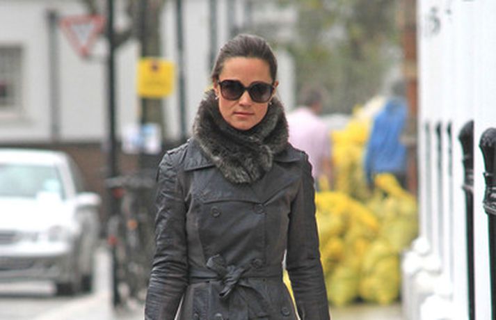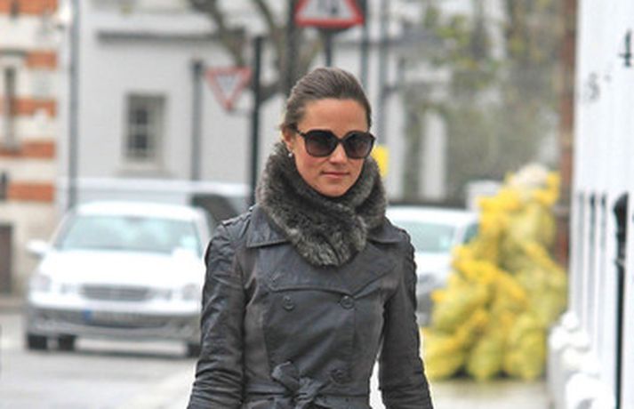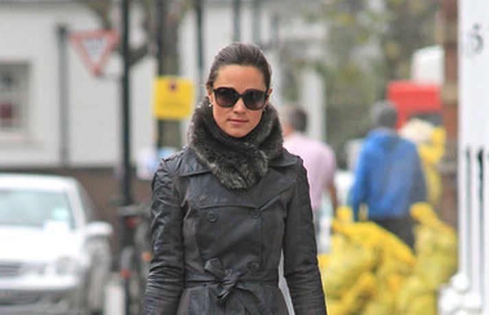 Litla systir hertogaynjunnar af Cambridge, Pippa Middleton, 28 ára, gengur daglega sömu leiðina til og frá vinnu í miðborg Lundúna. Breskir miðlar fá ekki nóg af Pippu sem var klædd í svartan frakka í fyrradag og daginn eftir í stuttan leðurjakka. Í Bretlandi seljast föt eins og Pippa klæðist eins og heitar lummur svo vægt sé til orða tekið. Þá má einnig sjá hana í köflóttu stuttu pilsi í myndasafni.