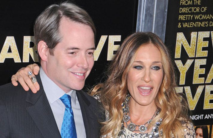 Leikkonan Sarah Jessica Parker, 46 ára, og eiginmaður hennar, leikarinn Matthew Broderick, stilltu sér upp á rauða dreglinum á frumsýningu myndarinnar New Year's Eve sem sýnd er í Sambíóunum. Sarah var klædd í Pauline Trigere kjól, Manolo Blahnik skó og með Judith Leiber tösku. Þá má einnig sjá Söruh með dætur þeirra og son í New York. - Skoða myndir hér.Það eru góðir dagar, ágætir dagar og slæmir. Þannig er hjónabandið, sagði Sarah.