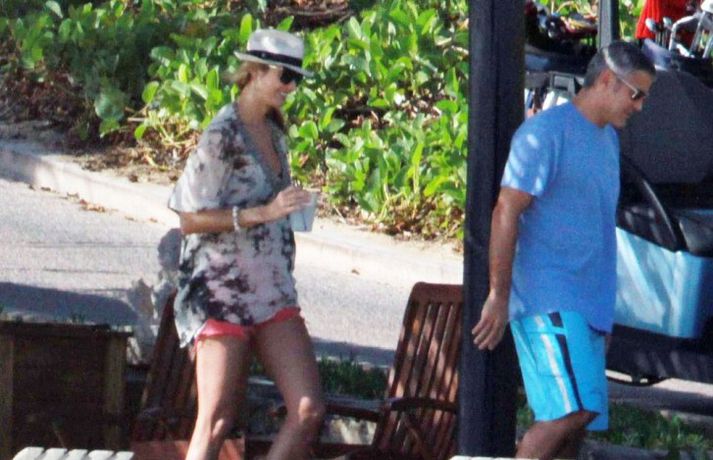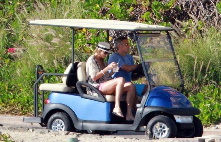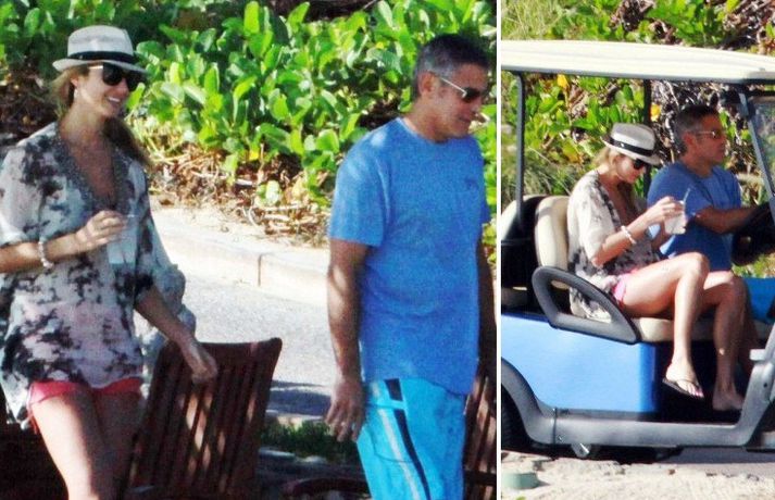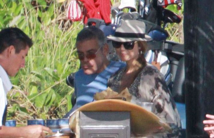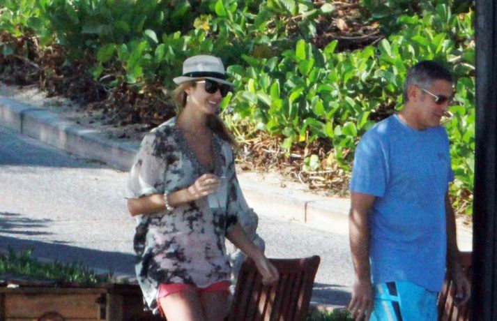 Leikarinn George Clooney, 50 ára, og unnusta hans Stacy Keibler, 32 ára, nutu lífsins í Cabo San Lucas í Mexíkó í gærdag.Meðfylgjandi myndir voru teknar þegar parið stoppaði á bar í vegakanti og fékk sér hressingu.Ég kýs að deila ekki persónulega lífi mínu með ykkur... ef ég gerði það væri það ekki persónulegt, lét hönkið hafa eftir sér.