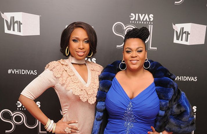 Söngkonan Jennifer Hudson, 30 ára, stillti sér upp á rauða dreglinum á VH1 dívu-tónleikum klædd í Francesco Scognamiglio kjól og ævintýralega skó í stíl.