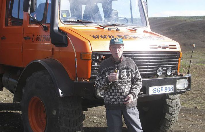 Baldur Sigurðsson varð að skilja dráttarvagn eftir uppi á fjöllum haustið 1971. Hann komst ekki í leitirnar fyrr en í síðustu viku. Í honum voru hálffullir bensínbrúsar en það eldsneyti var keypt á 16 krónur lítrann. Árið 1971 hóf Baldur Sigurðsson, sem er frumkvöðull í ferðamennsku á jöklum, ferðir frá Dyngjuhálsi og var hann þar með snjóbíla og fleiri tæki sem notuð voru til ferða um Kverkfjöll, Bárðarbungu og Grímsvötn á Vatnajökli til fjölda ára. Um haustið, það ár, bar svo til að þegar hann ætlaði að ferja öll tæki og tól til byggða varð hann að skilja eftir farangursvagn nokkurn sem hannaður er til að hafa aftan í snjóbíla. „Það átti að ná í hann helgina eftir og þá fór pabbi við annan mann en þeir urðu frá að hverfa vegna óveðurs,“ rifjar Sigurður, sonur Baldurs, upp. Síðan fór Sigurður sjálfur á vettvang en þá var allt komið undir hvíta fönn. Í hönd fór mikill snjóavetur svo ekki sást tangur né tetur af vagninum og fóru þeir feðgar þó á hverju hausti að leita að honum með stöngum líkt og gert er við leit eftir snjóflóð. „Við sögðum í gríni að það væri engu líkara en jökullinn hefði bara stolið vagninum meðan við vorum í byggð,“ segir Sigurður. Baldur er nokkuð kominn á aldur svo hann hafði ekki farið á svæðið í nokkur ár þar til í síðustu viku að hann ákvað að fara þangað með Sigurði syni sínum. Og þá dró heldur betur til tíðinda. „Ég er að labba þarna meðfram jöklinum þegar ég sé glytta í vagninn upp úr sandinum, svo ég kalla í pabba og hann átti náttúrlega erfitt með að trúa þessu, reyndar var hann varla enn farinn að trúa þessu þótt hann stæði uppi á sjálfum vagninum.“ Sigurður hafði labbað yfir þetta svæði í fyrrahaust en þá lá um tveggja metra snjór yfir því. Með vagninum fundust þrír hálffullir bensínbrúsar. „Pabbi sagðist muna það að hann hefði keypt lítrann á 16 krónur svo verðið hefur heldur betur hækkað þessi 40 ár sem þessi brúsar hafa dvalið í skaflinum,“ segir Sigurður. Síðastliðið föstudagskvöld fór síðan Sigurður með vösku liði og gróf vagninn upp en svo kalt er orðið á fjöllum að það snjóaði á þá meðan á verkinu stóð. Nú er þessu 40 ára volki vagnsins lokið og hann kominn til byggða. Sigurður ætlar að gera hann upp og þótt vagninn fari kannski ekki aftur hátt upp á fjöll verður honum engu að síður gert hátt undir höfði. jse@frettabladid.is