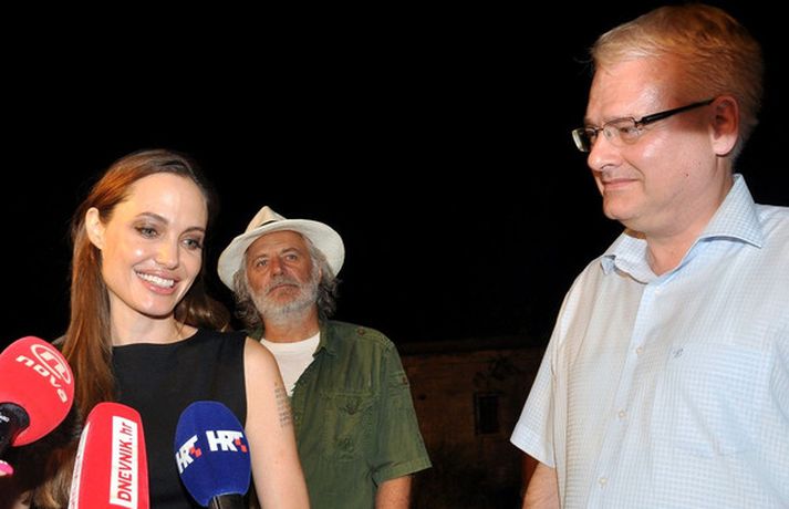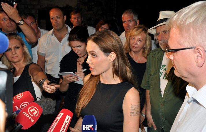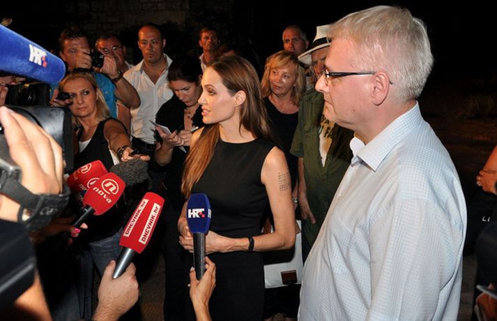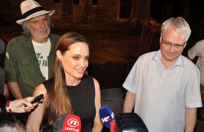 Leikkonan Angelina Jolie, 36 ára, var mynduð í Króatíu um helgina. Þar hitti hún forseta landsins, Ivo Josipovic, til að vekja athygli á afleiðingum styrjaldarinnar í Króatíu árið 1990. Eins og sjá má á myndunum var Angelina stórglæsileg með slegið hárið í svörtum kjól.