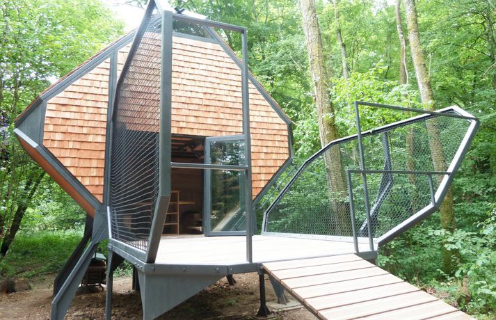 Meðfylgjandi myndir sýna skemmtilega hannaðan kofa sem er staðsettur í skógi í Bordeaux í Frakklandi. Hugmyndin var að byggja lítinn látlausan kofa sem skaðaði ekki umhverfi sitt á nokkurn hátt heldur samlagaðist umhverfinu. Kofinn minnir helst á skammarkrók fyrir einhvern sem hefur gert eitthvað af sér því lúxusinn er enginn og plássið lítið eins og sjá á myndunum. 500m² stofa - sjá hér.