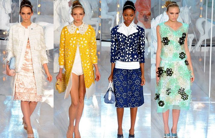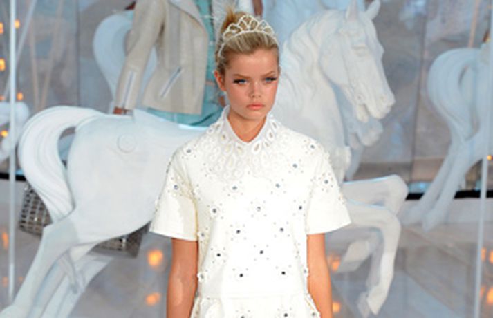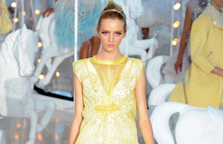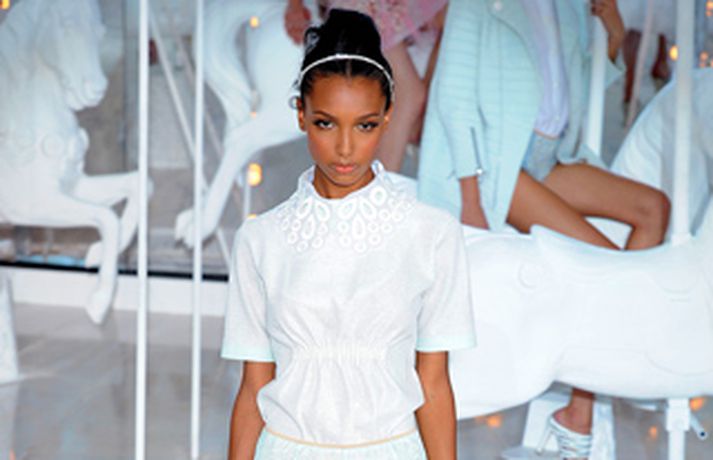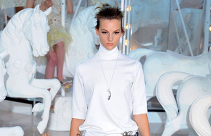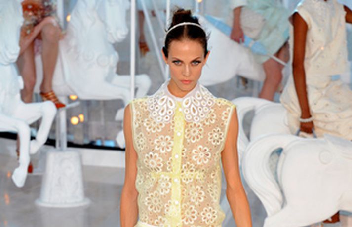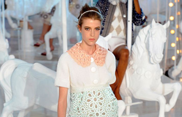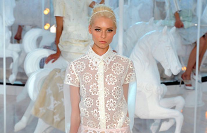 Meðfylgjandi myndir voru teknar af vor- og sumarlínu Louis Vuitton á tískuvikunni í París. Eins og sjá má eru pastellitir ráðandi í línunni. Hvít hringekja sem staðsett var á miðju sviðinu skapaði skemmtilega stemningu á sýningarpallinum. Skoða myndir hér.