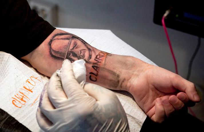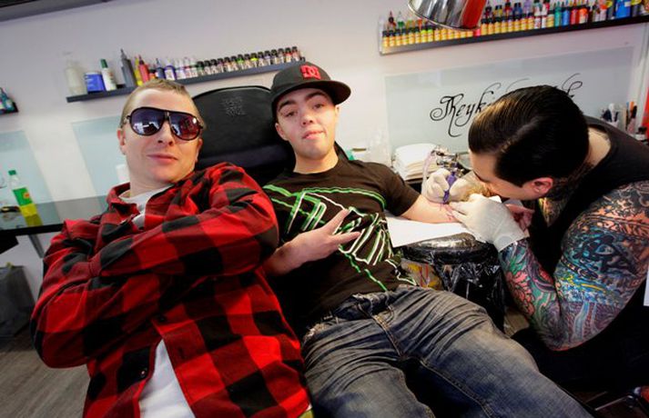 Langt því frá að vera furðulegasta flúrið 10. febrúar 2011 10:00 Linda Mjöll Þorsteinsdóttir, Össur HAfþórsson, Reykjavík Ink, tattú, húðflúr dóttirin Irena Sól Össur Hafþórsson, annar eigenda húðflúrsstofunnar Reykjavík Ink, segir að húðflúr Þorgeirs Gunnarssonar sé langt því frá að vera það furðulegasta sem hefur verið teiknað á stofunni hans. Þorgeir er eldheitur aðdáandi Erps Eyvindarsonar og hljómsveitar hans, XXX Rottweiler og lét húðflúra andlit rapparans á innanverðan framhandlegg sinn í gær. „Furðulegasta tattúið var mynd af leiðbeiningunum um hvar maður á að þvo sér þegar maður fer í sund," segir hann. „Hann fékk útlínurnar af kallinum og rauðu blettina sem sýna hvar maður á að þvo sér. Hann lenti í útistöðum við íslenskan baðvörð og honum fannst þetta svo eftirminnilegt. Og þetta var ekki lítið tattú!" Tengdar fréttir Aðdáandi Erps lætur flúra andlit hans á handlegginn „Þetta er sjúklega flott. Alveg geðveikt. Erpur verður hérna að eilífu,“ segir Þorgeir Gunnarsson, eldheitur aðdáandi Erps Eyvindarsonar og hljómsveitar hans, XXX Rottweiler. 10. febrúar 2011 07:00 Mest lesið Bestu, stærstu, slökustu og verstu myndir ársins 2025 Bíó og sjónvarp Eru þetta ljótustu og fallegustu nýbyggingar ársins? Menning Leitin á Svínafellsjökli sem hefur enn ekki skilað árangri Lífið Frægir fundu ástina 2025 Lífið Bandalag listamanna lýsir yfir stuðningi við Dóru Menning „Sat í átta klukkutíma á dag og horfði út um gluggann“ Menning Íslenska stelpan sem gerðist mormóni Lífið Best klæddu Íslendingarnir 2025 Tíska og hönnun „Við erum öll dauð hvort sem er“ Lífið „Ef einhver telur að ég hljóti að vera sjúkur, þá verður að hafa það“ Menning Fleiri fréttir Leitin á Svínafellsjökli sem hefur enn ekki skilað árangri Krakkatía vikunnar: Ísskápastríð, Eivör og Grafarvogur „Við byrjuðum að hlusta á jólalög í júlí“ Frægir fundu ástina 2025 Íslenska stelpan sem gerðist mormóni „Við erum öll dauð hvort sem er“ Fréttatía vikunnar: Rob Reiner, Dóra Björt og fullir unglingar 500 Esjuferðir á árinu: „Sumir hrista bara hausinn og lygna augunum“ Útgefandi Walliams lætur hann róa Fáklæddir barþjónar þegar Regnboginn opnaði í Bíó Paradís Þriðja stigs krabbameinið það besta sem kom fyrir hann Dúnninn bakaður í fjóra sólarhringa til að drepa allt í honum Heilsu krónprinsessunnar hrakar gríðarlega Pete orðinn pabbi Nýkominn úr meðferð og „sjaldan verið betur nýsleginn túskildingur“ Laufey á lista Obama „Ég heyrði þá kalla á mig en gat engu svarað“ Opnar sig í fyrsta sinn: Kyssti yfirmanninn í fyrsta sinn þetta kvöld Sex hundruð ára kastali Björns í Frakklandi svo gott sem klár Fyrirsát að Valgerði, Stund Pírata og meint alzheimer Þráins Bertelssonar „Það jafnar sig enginn eftir svona og við munum aldrei gera það“ Ungir sjálfstæðismenn gefa út vandræðalegt fjölskyldudagatal Keough sögð líffræðileg móðir Benjamin Travolta Rússland aftur í Eurovision - undirskriftasöfnun Óskarsverðlaununum streymt á Youtube Karmað muni bíta þjófinn í rassinn þegar títan og glyttan byrja að dansa í hitanum Hreimur og Ólafur Darri perluvinir sem horfa á enska boltann saman „Ég er mamman sem gat aldrei gefið honum það sem hann óskaði sér“ Áttu að hitta Reiner-hjónin daginn örlagaríka Leynigesturinn hitti Heimi Karls beint í hjartastað Sjá meira
