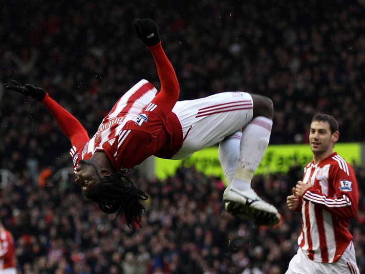 Manchester City og Tottenham héldu bæði sínu striki með eins marks sigrum í leikjum sínum í ensku úrvalsdeildinni í dag. Manchester City komst upp að hlið Manchester United á toppnum með sigri á Blackpool og Tottenham fór upp fyrir Chelsea með sigri á Fulham. Joe Cole tryggði Liverpool 2-1 sigur á Bolton með potmarki af stuttu færi í uppbótartíma. Manchester City vann sinn þriðja leik í röð þegar liðið vann 1-0 heimasigur á Blackpool. Adam Johnson skoraði sigurmarkið á 34. mínútu með skoti fyrir utan teig sem fór af varnarmanni og í netið. Tveimur mínútum síðar gat Carlos Tevez bætt við marki. Yaya Toure var þá felldur en Tevez skaut framhjá úr vítinu. Gareth Bale tryggði Tottenham 1-0 sigur á Fulham með skallamarki á 42. mínútu sem kom eftir aukaspyrnu frá Hollendingnum Raphael van der Vaart. Joe Cole tryggði Liverpool 2-1 sigur á Bolton í hugsanlega síðasta leik liðsins undir stjórn Roy Hodgson. Liverpool lék mun betur en í tapleiknum á móti Wolves en sigurmarkið kom ekki fyrr en í uppbótartíma. Kevin Davies nýtti sér sofandahátt í vörn Liverpool rétt fyrir hálflek með því að skalla aukaspyrnu Matt Taylor inn af fjærstöng. Fernando Torres jafnaði metin eftir aðeins rúmar þriggja mínútna leik í seinni hálfleik eftir að hann afgreiddi vel frábæra vippu Steven Gerrard inn í teiginn. Joe Cole kom inn á sem varamaður og skoraði sigurmarkið af stuttu færi í uppbótartíma. Kenwyne Jones fagnar marki sínu.Mynd/Nordic Photos/GettyWest Ham vann 2-0 heimasigur á Úlfunum í botnslag deildarinnar og kom sér fyrir vikið upp úr botnsætinu. Robert Green varði nokkrum sinnum frábærlega frá sóknarmönnum Wolves áður en Roland Zubar varð fyrir því að skora sjálfsmark eftir að Carlton Cole missti af fyrirgjöf Frederic Piquionne. Freddie Sears innsiglaði síðan sigurinn í seinni hálfleik. West Ham fór upp úr fallsæti og alla leið upp í 15. sætið með þessum sigri. Stoke var búið að tapa heimaleikjum á móti bæði Blackpool og Fulham að undanförnu en snéri við blaðinu með 2-0 heimasigri á Everton. Kenwyne Jones skoraði fyrra markið með skalla eftir glæsilegan undirbúning Matt Etherington en seinna markið var sjálfsmark Phil Jagielka. Danny Welbeck og Darren Bent komu Sunderland í 2-0 á fyrstu 19 mínútunum á móti Blackburn og læirsveinar Steve Bruce komust aftur á sigurbraut eftir tvo tapleiki í röð. Asamoah Gyan skoraði síðan þriðja markið undir lokin og innsiglaði 3-0 sigur. Gareth Bale fagnar sigurmarki sínu.Mynd/APÚrslit og markaskorarar í ensku úrvalsdeildinni í dag:Liverpool-Bolton 2-1 0-1 Kevin Davies (43.), 1-1 Fernando Torres (49.)Man City-Blackpool 1-0 1-0 Adam Johnson (34.)Stoke-Everton 2-0 1-0 Kenwyne Jones (23.), 2-0 Sjálfsmark Phil Jagielka (69.)Sunderland-Blackburn 3-0 1-0 Danny Welbeck (11.), 2-0 Darren Bent (19.), 3-0 Asamoah Gyan (89.)Tottenham-Fulham 1-0 1-0 Gareth Bale (42.)West Brom-Man Utd 1-2 0-1 Wayne Rooney (3.), 1-1 James Morrison (14.), 1-2 Javier Hernández (75.) West Ham-Wolves 2-0 1-0 Sjálfsmark Ronald Zubar (51.), 2-0 Freddie Sears (79.)