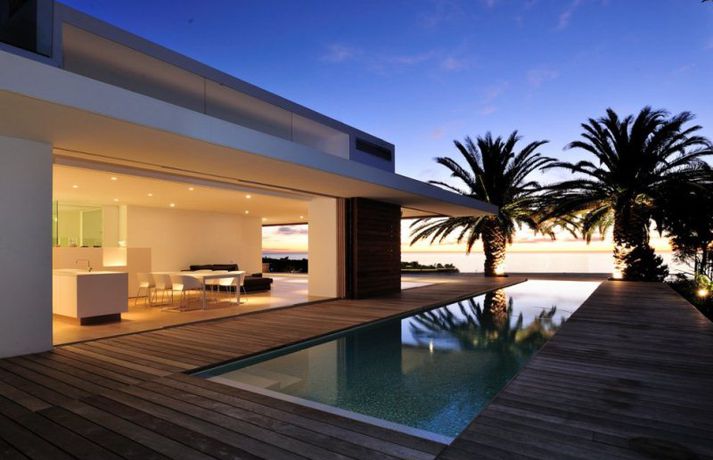 Klikkað útsýni elly@365.is skrifar 11. september 2011 19:42 Húsið, sem er í Suður-Afríku, er byggt sem sumarhús fyrir einstakling sem býður gestum oftar en ekki í heimsókn. Eigandinn vildi nútímalegt hús þar sem hann gæti notið loftslagsins með opið útsýni úr flestum rýmum hússins. Opin færa íbúum ekki bara útsýni til allra átta heldur skapa náttúrulega loftkælingu þar sem golunni frá hafinu er beint í gegnum allt húsið með verkfræðilegri hugmyndafræði náttúrunnar sem sér til þess að þarna verði aldrei og of heitt eða kalt. Hugmyndin á bakvið þessa hönnun gengur út á það að skapa hús í nánum samskiptum við náttúruna. Þetta er meðal annars er gert með því að nota sundlaugina til þessa að tengja húsið og hafið með sjónrænum áhrifum. Mest lesið Eitt glæsilegasta hús Reykjavíkur til sölu Lífið Hvað þýðir „six-seven“? Lífið Vafðist tunga um tönn þegar Bond bar á góma Bíó og sjónvarp Fasteignasalar og ofurskvísur í Októberfest stemningu Lífið Meðalmennskan plagar Brján Gagnrýni Kynslóðabilið kom í ljós þegar umræðan beindist að blautbolakeppni Lífið Aldrei of seint að prófa sig áfram Tíska og hönnun Hótelstjóri Hótels Tindastóls er allur Bíó og sjónvarp Sjóðheitt fyrir snjóstorm Tíska og hönnun Skein skært í sögulegum gleðikonukjól Tíska og hönnun Fleiri fréttir Sjóðheitt fyrir snjóstorm Skein skært í sögulegum gleðikonukjól Aldrei of seint að prófa sig áfram Dannaðar dömur mættu með dramað „Nú dýrka ég að vera vaxin eins og fæðing Venusar“ Hiti í Hringekjunni Virtist hvorki geta séð né andað Sænskur og sjóðheitur undir áhrifum BDSM Kasóléttur forystusauður, ungstirni og engilfagrar kanónur „Bíður bara inni í skáp eftir brúðkaupinu“ Betra sem hárbindi en tagl í Bríeti Léti aldrei sjá sig í ökklasokkum Gelluorkan í hæstu hæðum hjá Ginu Heitir pabbar í hlaupaklúbbi Skilnaðar-toppur í París Fann ástina í örlagaríkum kjól Íslensk fyrirsæta slær í gegn á tískupöllum Mílanó Kláraði lögfræði meðan hún sat fyrir hjá Dior Heitasta handatískan í dag Íslenski hönnuðurinn sem Dorrit dýrkar Með sálfræðigráðu á leið í skartgripahönnun í Róm Heklaði á sig forsýningarkjólinn Sjóðheit stemning á rauða dreglinum Ástin sigrar í nýrri herferð gegn ofbeldi Í þrjátíu ára gömlum fötum af mömmu Tískan við þingsetningu: Þjóðlegur þriðjudagur Rokkar pils sem bol og snýr flíkum öfugt Fögnuðu Þjóðbúningadeginum með stæl Fáklædd og flott á dreglinum „Hugsa fallega til stelpunnar sem ég var þá“ Sjá meira