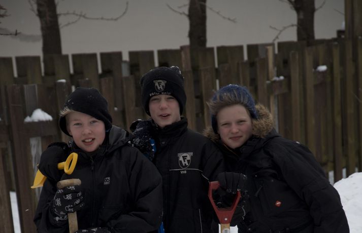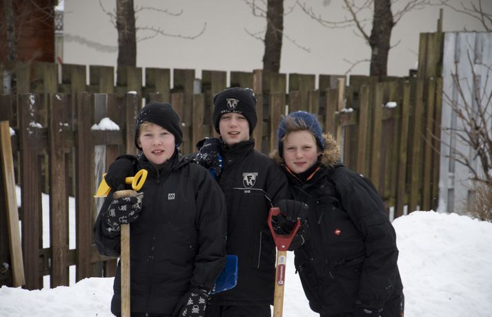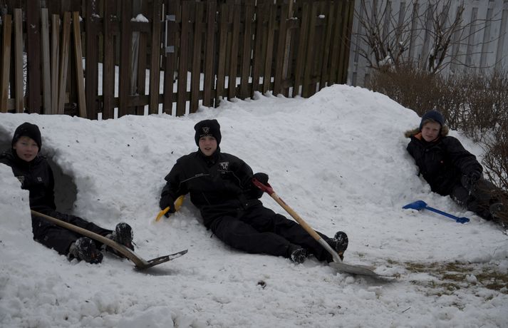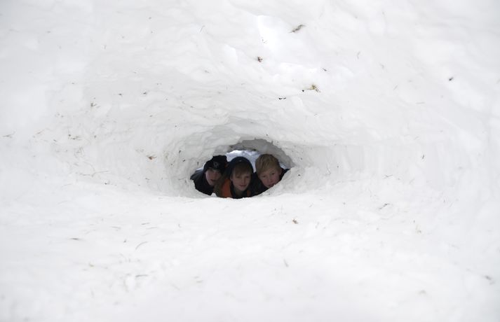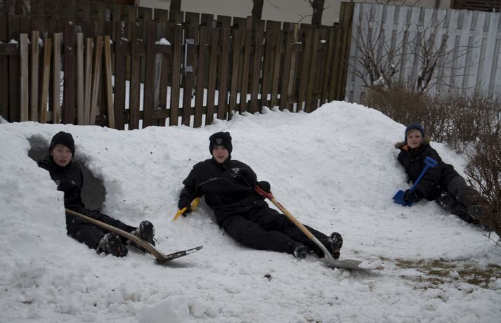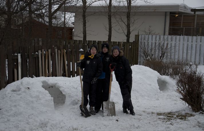 Byggðu tvö snjóhús og grófu göng á milli 9. febrúar 2011 10:34 Félagarnir Viktor Helgi Benediktsson, Kolbeinn Sveinsson og Hrafn Friðriksson eru stoltir af smíðinni. Það hefur verið óvanalega snjóþungt í borginni undanfarna daga mörgum til ama, en öðrum til skemmtunar. Félagarnir Viktor Helgi Benediktsson, Kolbeinn Sveinsson og Hrafn Friðriksson, sem eru allir tólf ára gamlir, nýttu snjóinn til þess að grafa göng. Drengirnir hófust handa klukkan tíu í gærmorgun. Þeir byggðu tvö snjóhús á sitthvorum staðnum og ákváðu svo að grafa göng á milli þeirra. Samkvæmt vísindalegri mælingu drengjanna voru göngin um það bil fjórir metrar á lengd. Samanlagt reyndist lengdin í kringum 6 metra. Drengirnir reiknuðu reyndar ekki út fermetrafjöldann, sem hefur eflaust jafnast á við litla kytru. Mannvirkið fékk ekki að standa lengi vegna ófyrirsjáanlegra duttlunga veðursins, stormurinn skolaði þessum fyrirmyndahíbýlum í burtu í nótt og er lítið eftir annað en minningin ein. En til allra lukku tóku drengirnri myndir af húsnu sem má finna í safni hér fyrir neðan. Mest lesið Tvær þyrlur sækja fjóra eftir alvarlegan árekstur á Fagurhólsmýri Innlent Í deilum við nágrannann vegna trjáa Erlent Trump telur friðarsamkomulag mögulegt innan nokkurra vikna Erlent Ferðakostnaður forsetans rúmar tuttugu milljónir Innlent „Gamla góða Ísland, bara betra“ Innlent Sakamálin sem einkenndu árið sem er á enda Innlent Tilhæfulaus líkamsárás í annað sinn og enginn kom til aðstoðar Innlent „Þetta er ansi flókið, en þó ekki svo flókið“ Erlent Ekki boðlegt að þingið hunsi þjóðaratkvæðagreiðslu Innlent Minnst einn látinn eftir að tvær þyrlur rákust saman í loftinu Erlent Fleiri fréttir Tvær þyrlur sækja fjóra eftir alvarlegan árekstur á Fagurhólsmýri „Rúllandi rafmangsleysi“ alla daga og tífaldur þungi í árásum „Gamla góða Ísland, bara betra“ Gróður farinn að grænka fyrir norðan Ferðakostnaður forsetans rúmar tuttugu milljónir Sakamálin sem einkenndu árið sem er á enda Ekki boðlegt að þingið hunsi þjóðaratkvæðagreiðslu Margfaldur þungi í loftárásum og kyntákn kveður Afbrot, fjölmiðlastyrkir og stefna Miðflokksins Segir dulda skattahækkun taka gildi á næsta ári Líkamsárás í miðbænum Dró konu eftir gangstétt og lyfti henni svo upp með hálstaki Reyndi ítrekað að stofna til slagsmála við skemmtistað Sjálfvirkir lyfjaskammtarar borgi sig tvöfalt til baka Tilhæfulaus líkamsárás í annað sinn og enginn kom til aðstoðar Keyptu aðstoð vegna leiðréttingar landsframlags og hringferðar ráðherra Frumkvæðisvinna lögreglu að loka fjórum afhendingarstöðum „Fara þarf í raunverulegar aðgerðir“ Hrindir af stað söfnun fyrir föður drengsins Kjartan sækist ekki eftir endurráðningu sem bæjarstjóri Landeldi í vexti og lögregla lokar áfengisverslunum Árekstur á Suðurlandsbraut Ekki talinn tengjast aukinni eldvirkni Handteknir grunaðir um framleiðslu fíkniefna Jarðskjálfti við Kleifarvatn Lögreglumenn eltu lausa hesta Lögregla lokaði Smáríkinu og Nýju vínbúðinni Stöðvuðu menn í ofbeldishug við landamærin Piltur skilinn eftir ber að ofan og skólaus eftir hrottafengna árás Dæmdur fyrir líkamsárás í matsalnum Sjá meira