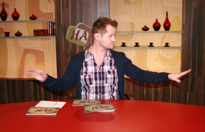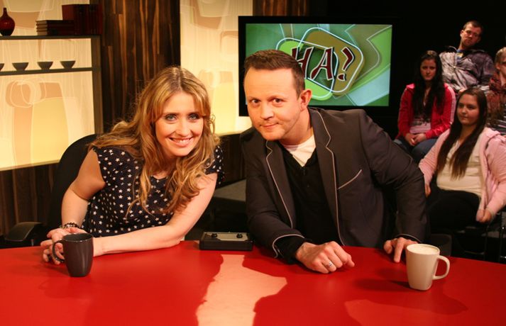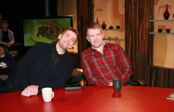 Skemmti- og spurningaþátturinn Ha? hóf göngu sína á Skjá einum í gærkvöldi. Umsjónarmaður er leikarinn Jóhann G. Jóhannsson og liðsstjórar eru þau Edda Björg Eyjólfsdóttir og Sólmundur Hólm. Leðurbuxur Eddu stálu senunni en Jóhann og Sólmundur litu út eins og viskustykki, klæddir í skyrtur, á meðan Edda geislaði af kynþokka og sjálfsöryggi. Gestir þáttarins voru eiturhressir Baggalútsmenn. Leðurbuxurnar má meðal annars skoða á meðfylgjandi myndum.