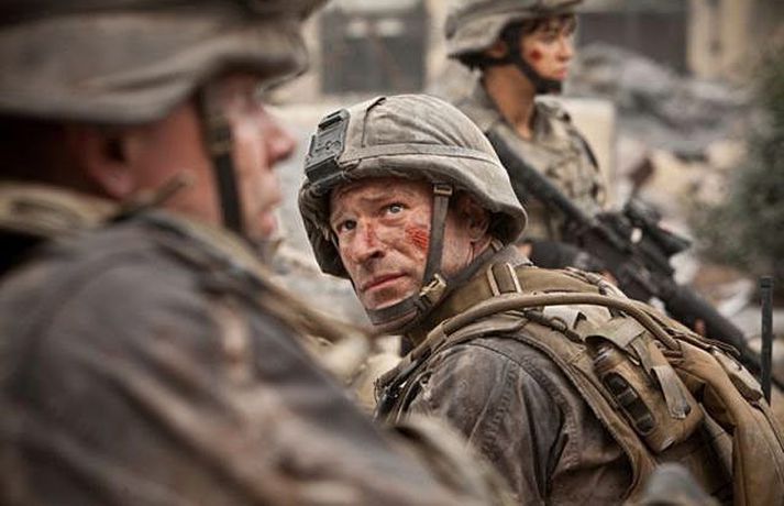 Battle: Los Angeles verður frumsýnd hérlendis á morgun og á hún vafalítið eftir að njóta sín vel á hvíta tjaldinu enda uppfull af sprengingum og tæknibrellum eins og algengt er með myndir í þessum dúr. Söguþráðurinn er á þann veg að í fjöldamörg ár hafa staðfest atvik varðandi fljúgandi furðuhluti átt sér stað víða um heim; í Buenos Aires, Seoul, Frakklandi, Þýskalandi og Kína. En árið 2011 breytast þessi einstöku sakleysislegu atvik í skelfilegan veruleika þegar jörðin sætir árás frá óþekktum öflum. Á meðan fólk um allan heim fylgist með helstu borgum jarðar falla hverri á fætur annarri, er einn staður eftir þar sem lokabardagi mannkynsins fer fram, í orrustu sem enginn bjóst við. Það veltur á Nantz (Aaron Eckhart) og sveitinni hans að draga línuna og berjast við óvin sem á sér engin fordæmi. Auk Eckharts eru í helstu hlutverkum þau Michelle Rodriguez, Michael Peña, Nzinga Blake og Ne-Yo. Leikstjóri er Jonathan Liebesman sem á að baki hryllingsmyndirnar The Texas Chainsaw Massacre: The Beginning og Darkness Falls. Hann ætti því að eiga auðvelt með að halda bíógestum á sætisbrúninni í Battle: Los Angeles. Myndatakan er í heimildarmyndarstíl og með því vildi Liebesman líkja eftir myndum á borð við Black Hawk Down og United 93 þar sem heppnaðist vel að auka raunsæisgildið með hreyfanlegri myndatökunni. Battle: Los Angeles fylgir í fótspor geimverumynda undanfarinna ára þar sem mannkynið er í bráðri hættu og menn þurfa að hafa sig alla við til að verða ekki undir. Dæmi um þetta eru Independence Day og War of the Worlds sem báðar gengu gríðarlega vel, enda virðast geimverur og árásir þeirra á mannkyn alltaf jafn áhugaverðar fyrir bíógesti. Þess má geta að tónlistarmaðurinn Jóhann Jóhannsson samdi tónlistina við stiklurnar úr myndinni. Miðað við hversu áhrifaríkar þær eru og passa vel við viðfangsefnið eiga verkefni Jóhanns í Hollywood vafalítið eftir að verða mörg á næstu árum.
