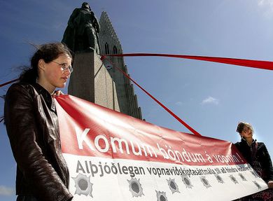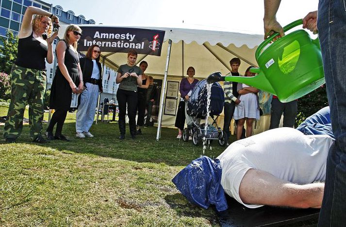 gegn pyntingum Samtökin buðu gestum og gangandi að prófa pyntingaraðferðir sem tíðkast víða á Austurvelli fyrir nokkrum árum. fréttablaðið/anton Mannréttindasamtökin Amnesty International halda í dag upp á fimmtíu ára afmæli sitt. Á þessum tímamótum eru félagar og stuðningsmenn samtakanna fleiri en þrjár milljónir í rúmlega 150 löndum Opnaðu dagblaðið þitt – hvaða dag vikunnar sem er – og þú munt finna frétt einhvers staðar að úr heiminum um manneskju sem var fangelsuð, pyntuð eða tekin af lífi vegna þess að skoðanir hennar eða trú er óviðunandi í augum stjórnvalda.“ Með þessum orðum hófst blaðagreinin sem varð upphafið að stærstu mannréttindasamtökum í heimi, Amnesty International. Það var breski lögfræðingurinn Peter Benenson sem skrifaði greinina um gleymdu fangana og kallaði eftir sakaruppgjöf árið 1961. Hann hafði frétt af tveimur portúgölskum nemum, sem höfðu skálað fyrir frelsinu og verið fangelsaðir fyrir vikið. Benenson benti á þær þúsundir manna sem væru fangelsaðir með ólögmætum hætti og vildi berjast fyrir því að slíkum samviskuföngum yrði sleppt úr haldi eða þeir fengju að minnsta kosti réttlát réttarhöld. Ákallið var svo birt í öðrum dagblöðum víða um heiminn og í kjölfarið urðu samtökin til. Á alþjóðlega mannréttindadeginum, 10. desember, var kveikt á fyrsta Amnesty-kertinu en kertið hefur orðið að tákni samtakanna. Beita sér víðar nú til dagsVopnin bundin Árið 2006 voru vopn Leifs Eiríkssonar bundin til að vekja athygli á herferð sem þá var í gangi til að þrýsta á gerð vopnaviðskiptasáttmála. fréttablaðið/e.ólAllt frá stofnun hafa samtökin barist fyrir því að mannréttindi séu virt og allir njóti verndar þeirra. Í upphafi voru þau fyrst og fremst fangasamtök eins og fyrr segir. Til dæmis hafa þau beitt sér fyrir afnámi dauðarefsingar og pyntinga frá áttunda áratugnum. Frá stofnun hefur margt breyst og samtökin beita sér nú víðar á sviði mannréttinda þó áfram sé lögð áhersla á fyrrgreind atriði. Samtökin rannsaka mannréttindabrot og gáfu út fyrstu skýrslur sínar, þá um aðstæður fanga, árið 1965. Nú til dags gefa samtökin út stóra skýrslu árlega um mannréttindabrot víðs vegar í heiminum. Í skýrslu síðasta árs var greint frá mannréttindabrotum í 157 löndum og landsvæðum. Rannsóknarnefndir eru sendar til að skoða ástand þar sem þurfa þykir. Meginreglan er sú að deildir frá öðrum löndum eiga að rannsaka mál og þrýsta á viðeigandi aðila. Þetta er gert til þess að samtökin geti frekar viðhaldið ópólitískri stöðu sinni. Að sama skapi taka samtökin ekki við fjármagni frá opinberum aðilum og ekki af fyrirtækjum nema þau hafi sérstaklega verið skoðuð. Þannig vilja samtökin einnig vera óháð. Þau reiða sig því að miklu leyti á fjárhagslegan stuðning félaga. Samtökin hvetja til aðgerða þar sem þrýst er á stjórnvöld, stofnanir, fyrirtæki og alþjóðlegar hreyfingar. Ýmsum aðferðum er beitt í þessum tilgangi, allt frá mótmælum og samkomum á opinberum vettvangi til bréfaherferða og annarra herferða á netinu. Í gegnum tíðinavið þjóðmenningarhúsið Heimsókn Luo Gan, eins æðsta yfirmanns öryggis- og dómsmála í Kína, var mótmælt árið 2003.Árið 1964 fékk Amnesty ráðgefandi stöðu hjá Sameinuðu þjóðunum og ári síðar hjá Evrópuráðinu. Tíu árum síðar samþykktu Sameinuðu þjóðirnar ályktun og síðar yfirlýsingu gegn pyntingum eftir herferð samtakanna. Íslandsdeild Amnesty var svo stofnuð árið 1974, og er því meðal eldri deilda samtakanna. Frumkvæði að því áttu hjónin Sigrún Sigurjónsdóttir og Frank Veenekaas, sem höfðu starfað með Amnesty í Hollandi. Þau komu hingað til lands fyrri hluta ársins 1974 og viðruðu hugmyndina um að stofna deild hér. Líkt og Peter Benenson hafði gert komu þau málinu á framfæri í dagblöðum. Þar birtist lítil tilkynning um kynningarfund og í framhaldinu var stofnfundurinn haldinn í Norræna húsinu 15. september þetta ár. Nú hefur samtökunum vaxið fiskur um hrygg og telja ellefu þúsund félaga hér á landi. Amnesty International hlaut friðarverðlaun Nóbels árið 1977 fyrir að styrkja stoðir frelsis og réttlætis, og þar með friðar í heiminum. Nokkrum árum fyrr hafði Sean McBride, formaður framkvæmdastjórnar samtakanna, hlotið sömu verðlaun. Þegar kom fram á níunda áratuginn höfðu samtökin hafið herferðir gegn dauðarefsingum, Þá höfðu sextán lönd afnumið slíka refsingu, en nú eru þau 96 talsins, auk þess sem önnur ríki stunda þær ekki þó enn sé heimild til þess í lögum. Félögunum hélt áfram að fjölga samhliða fleiri herferðum og árið 1992 voru þeir orðnir milljón talsins. Fjórum árum síðar hófst herferð fyrir alþjóðlegum sakamáladómstóli, sem var samþykkt að stofna árið 1998. Síðustu tíu ár hafa verið viðburðarík í sögu Amnesty og samtökin hafa breytt stofnsamþykktum og sett efnahagsleg, félagsleg og menningarleg réttindi fólks inn í baráttuna. Í dag verður svo haldið upp á daginn með viðburðum um allan heim.