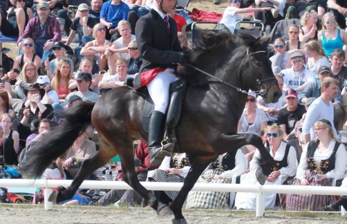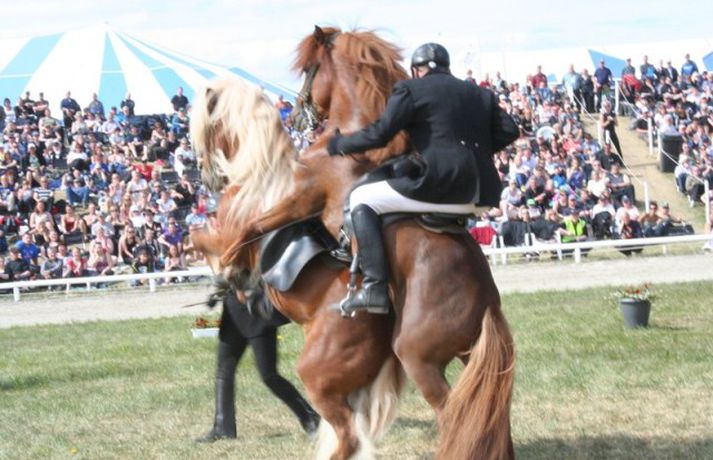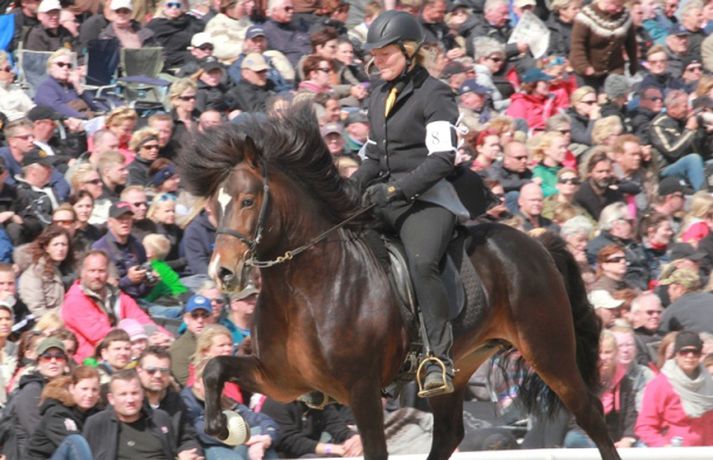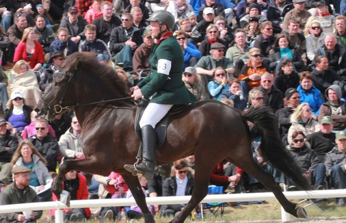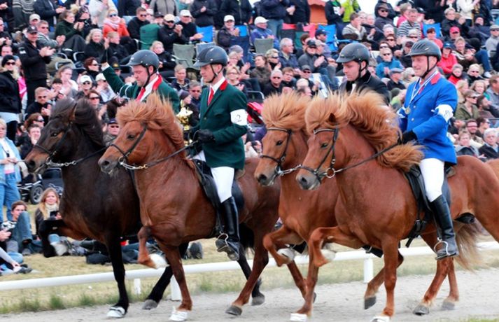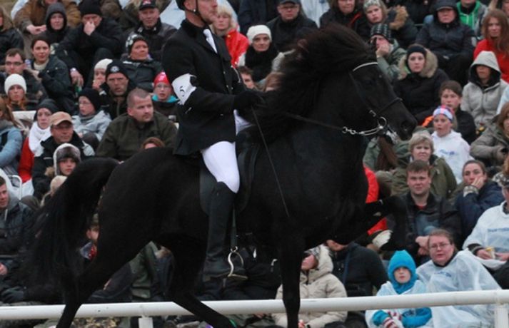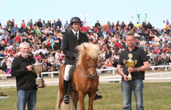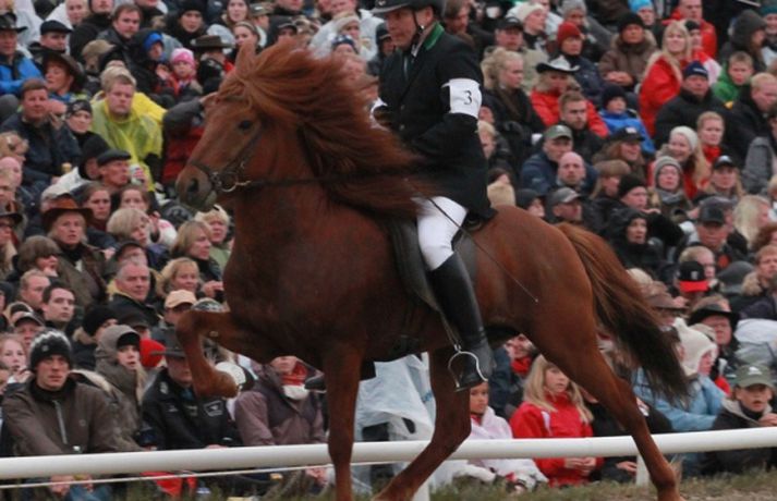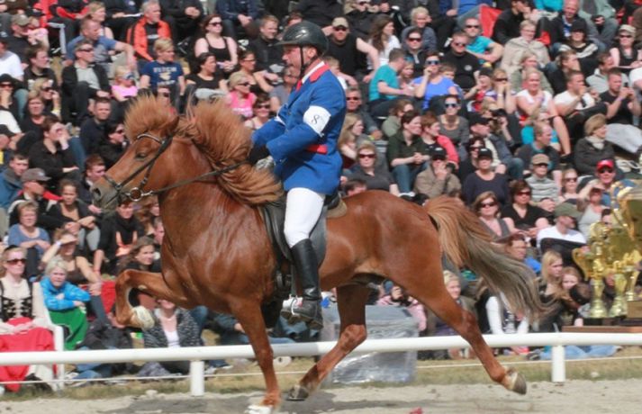 Ómur stóð uppi sem sigurvegari 4. júlí 2011 04:30 Ómur og Hinrik á glæsilegu tölti í lokaatriði Landsmóts hestamanna 2011. Fréttablaðið/Bjarni Glæsilegu Landsmóti hestamanna lauk á Vindheimamelum í Skagafirði í gær og var mál manna að hestakostur þar hafi verið einstaklega góður. Landsmótið átti að halda í fyrra en það var fellt niður vegna smitandi hestaflensu. Síðasta atriði mótsins var keppni alhliða gæðinga. Ómur frá Kvistum var óumdeilanlegur sigurvegari A-flokks gæðinga. Það var hinn kunni knapi Hinrik Bragason sem sýndi hestinn og uppskáru þeir einkunnina 8,98. Hinrik fékk jafnframt Gregersen-styttuna sem veitt er þeim knapa sem skarar fram úr í gæðingakeppnum mótsins og sýnir prúðmannlega framkomu á afburða vel hirtu hrossi. Þá hlaut Þórður Þorgeirsson verðlaun Félags tamningamanna fyrir framúrskarandi árangur í sýningu kynbótahrossa og fágaða reiðmennsku. Hann sýndi meðal annars Spuna frá Vesturkoti. Spuni hlaut einkunnina 9,25 fyrir hæfileika á mótinu. - bja Mest lesið Önnur stúlka með móður sinni þegar Högni var klófestur Innlent Líkir kærunni við „faglega aftöku“ Innlent Segir af sér þingmennsku vegna tilraunar til vændiskaupa Innlent „Í mínum huga eru þetta klárar ærumeiðingar“ Innlent Var í símanum við neyðarlínuna þegar ekið var aftan á hann Innlent „Lauslát mella“ hafi verið mildasta lýsingin á dómaranum Innlent Borgarstjóri fór með rangt mál Innlent Boðar 10 prósenta toll á Norðurlönd, Breta, Frakka, Þjóðverja og fleiri Erlent „Þetta er ekki það sem við samþykktum“ Erlent Danmörk „pínulítið land“ með „pínulítinn her“ Erlent Fleiri fréttir Karólína Helga skákaði sitjandi oddvita í Hafnarfirði Ísland standi með Grænlandi og Danmörku Vonar að skólarnir verði frjálsir frá símum í haust Álagning aldrei hærri: Eldsneytisverð hefði átt að lækka enn frekar Líkir kærunni við „faglega aftöku“ „Vegferð ákæruvaldsins til skammar“ Menntamálaráðherra tekur yfir hjúkrunarheimilin Fjögur handtekin á Akureyri grunuð um innbrot Viðvarandi óvissuástand bitni á langtímaáætlunum fyrirtækja Einn endaði á hliðinni og þrjú klemmdust á milli Var í símanum við neyðarlínuna þegar ekið var aftan á hann Ákvörðunin á ábyrgð stjórnenda Icelandair en ekki flugmanna „Hef hvergi hallað réttu máli“ Önnur stúlka með móður sinni þegar Högni var klófestur Fá þau að vera aftur á lista með Hildi? Fimm bíla árekstur á Reykjanesbraut og tveir fluttir á slysadeild Eigum eftir að sjá hvort Guðbrandur bæti upp fyrir hegðun sína Umfangsmikil lögregluaðgerð við Glerárgötu á Akureyri Öryrkjar eru með hærri laun en eldri borgarar Borgarstjóri fór með rangt mál Gagnrýnin hugsun skipti máli Krafa um að Margrét Löf verði gerð arflaus fer fyrir Landsrétt Hófu niðurrif á félagsheimilinu í leyfisleysi: „Skaðinn er skeður“ Fjórir slást um oddvitasæti Viðreisnar Afsögn þingmanns, hótanir Trumps og í beinni frá Svíþjóð Mun hærri dánartíðni og meiri örorka hjá fyrrum vöggustofubörnum „Í mínum huga eru þetta klárar ærumeiðingar“ Vilja Laugardalshöll líkt og þeim var lofað Kviknaði í Svarta sauðnum í Þorlákshöfn Taldi ekki sérstaka nauðsyn á að hneppa Helga Bjart í varðhald Sjá meira