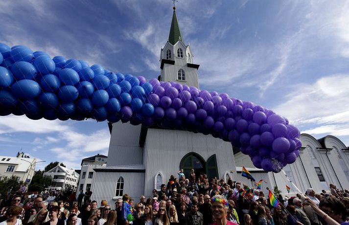 Sólin skein í miðborg Reykjavíkur þegar árleg gleðiganga hinsegin daga fór fram. Ljósmyndari Fréttablaðsins var á staðnum og fangaði stemninguna eins og sjá má á þessum skemmtilegu myndum. Bjarni Einarsson kvikmyndatökumaður á fréttastofu Stöðvar 2 og Vísis fangaði einnig stemninguna í miðbænum í meðfylgjandi myndskeiði sem Fannar Scheving Edwardsson klippti.