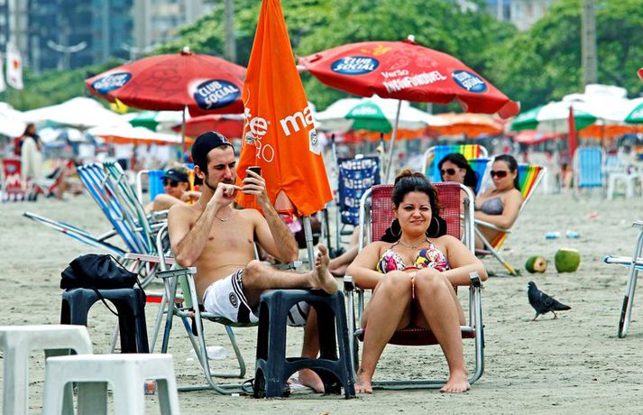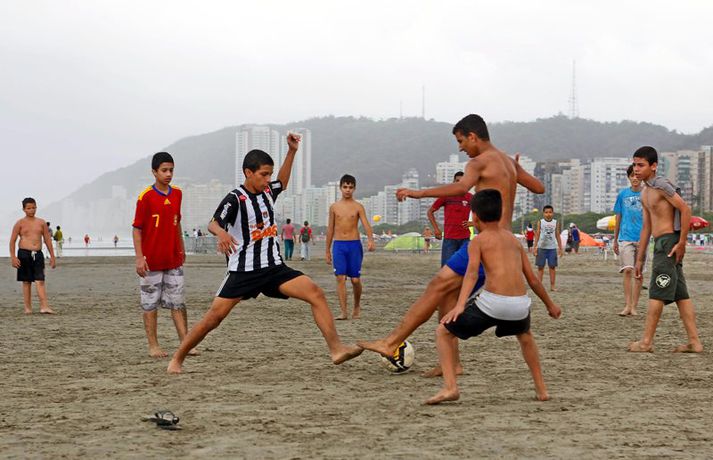 Á meðan stelpurnar okkar standa í ströngu á heimsmeistaramóti kvenna í handknattleik sem fram fer í Brasilíu gengur lífið sinn vanagang á ströndinni í Santos þar sem Ísland leikur í riðlakeppninni. Pjetur Sigurðsson ljósmyndari brá sér á ströndina.