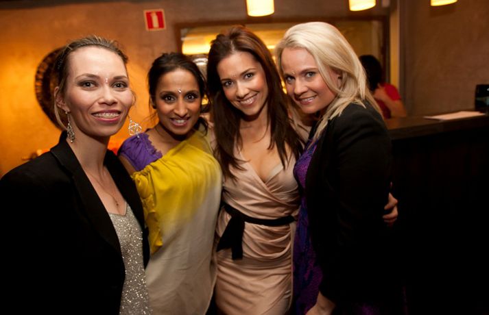 Meðfylgjandi myndir voru teknar í indversku dömuboði á föstudaginn var þar sem stórglæsilegar konur komu saman og snæddu brot af því besta er í boði á matseðli nýja veitingastaðarins Gandhi í Pósthússtræti. Þá fengu allar dömurnar að bragða dísætar „cupcakes" frá Friðriku Hjördísi Geirsdóttur og að loknum fordrykknum tók við veisla fyrir augu og bragðlauka en á Gandhi er suður indversk matreiðsla í hávegum höfð. Tilgangur kvöldsins var að leiða saman skemmtilegar konur og færa þær inn í kryddaða indverska heima að sögn skipuleggjenda. Athafnakonan Yesmine Olsson þeytti skífum og fyrirsætur frá Elite sýndu franskar Dim sokkabuxur sem fást í Lyfju Lágmúla og Smáralind en sýningarstúlkurnar voru farðaðar með Make Up Store snyrtivörum.