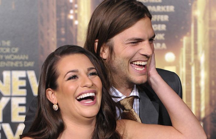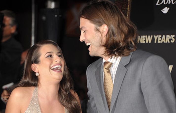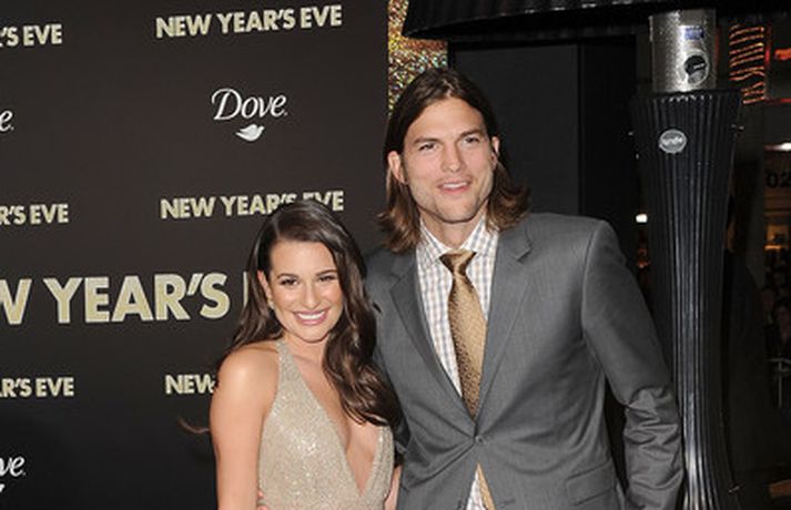 Leikkonan Lea Michele, 25 ára, og leikarinn Ashton Kutcher, 33 ára, voru brosmild á frumsýningu kvikmyndarinnar New Year's Eve í gærkvöldi. Ashton, sem skildi við eiginkonu sína, leikkonuna Demi Moore 17. nóvember síðastliðinn eftir sex ára hjónaband, skrifaði eftirfarandi á Twitter-síðuna sína: Hjónaband er eitt það erfiðasta í heimi og stundum ganga hlutirnir ekki upp. Burtséð frá því var Lea klædd í áberandi fallegan Valentino síðkjól og Christian Louboutin skó eins og sjá má á myndunum.myndir/cover media