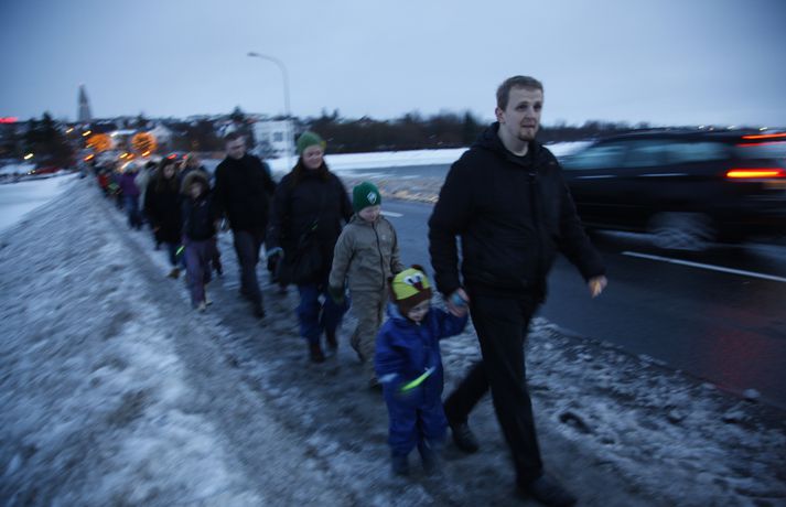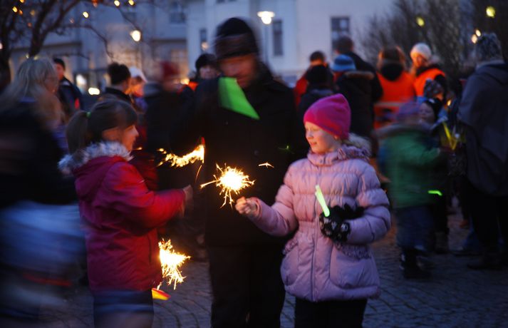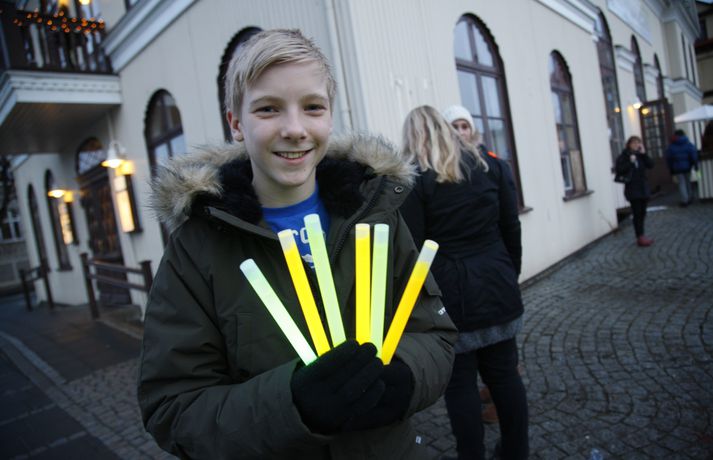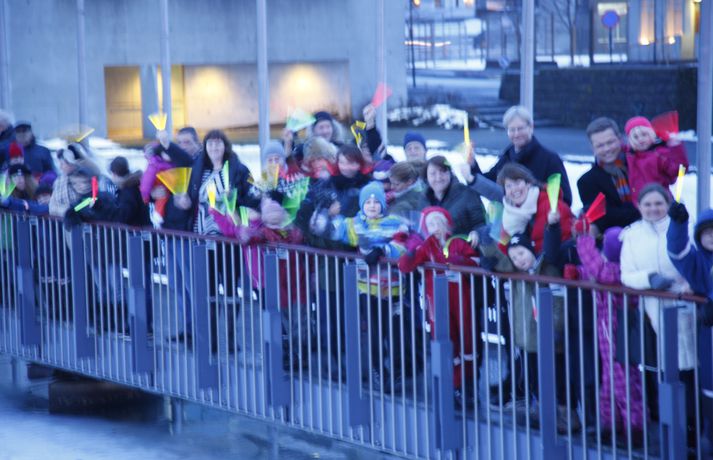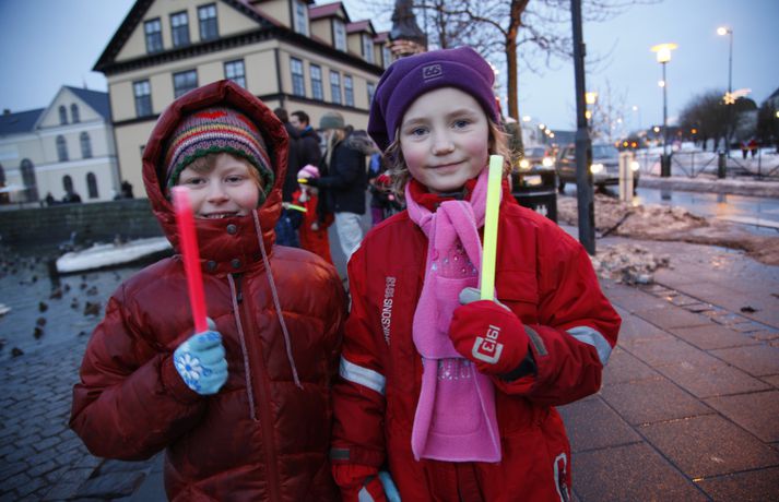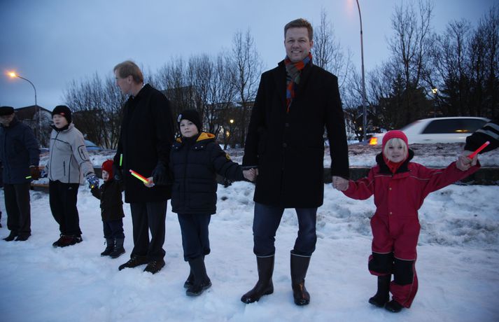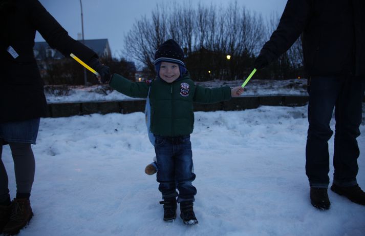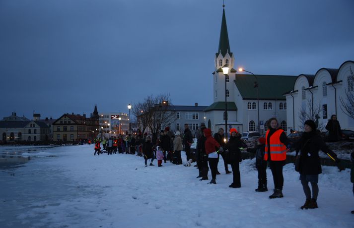 Tjörnin neon-lýst fyrir börnin - myndaalbúm 7. janúar 2012 18:06 Bónus lagði til um eitt þúsund neon-ljós til að vekja athygli á réttindum barna. Hátt á fimmta hundrað manns mættu við tjörnina til að mynda heillakeðju og vekja athygli á réttindum barna. Hersingin gekk með neon-ljós hringinn í kringum tjörnina og að göngu lokinni fengu allir heitt kakó frá Iðnó og stjörnuljós frá Landsbjörg. Meðfylgjandi myndir voru teknar við tjörnina í dag. Björg Björnsdóttir hjá Barnaheillum útvegaði þær.Markmiðið var að safna saman nægu fólki til að mynda órofna keðju hringinn kringum tjörnina. Markmiðið náðist ekki alveg. Eins og sagt var frá fyrr í dag markaði atburðurinn upphaf samvinnuverkefnis Barnaheilla og tólf íslenskra fyrirtækja. Markmið samstarfsins er að safna peningum sem varið verður börnum í hag og vekja athygli á réttindum barna. Tengdar fréttir Barnakeðja og neon-ljós við tjörnina Barnaheill á Íslandi ætla í dag að freista þess að mynda keðju í kringum Reykjavíkurtjörn með aðstoð 1000 barna til að vekja athygli á réttindum barna hér á landi en að sögn samtakanna hefur sjaldan verið brýnna en nú að standa vörð um málefni þeirra. Börn og foreldrar þeirra eru hvött til að taka þátt í þessu framtaki en boðið verður upp á heitt kakó og svo verður kveikt á stjörnuljósum og blysum. Keðjan verður mynduð klukkan fjögur. 7. janúar 2012 12:44 Mest lesið Þau kvöddu á árinu 2025 Erlent Hitinn fór í 19,8 stig og desembermetið slegið Veður Klæðning fauk af Stjórnsýsluhúsinu og skemmdi bíla Innlent Seinfeld og Friends-leikari látinn Erlent Fundu yfir milljón skjöl sem tengjast Epstein Erlent Fimm fórust í þyrluslysi á Kilimanjaro Erlent Einn fluttur á sjúkrahús eftir bílslys Innlent Fátækari eftir að hafa svindlað á ferðakonum Innlent Hvar er opið á aðfangadag? Innlent Arion banki varar við svikaherferð Innlent Fleiri fréttir Engin jólamessa vegna rafmagnsleysis Klæðning fauk af Stjórnsýsluhúsinu og skemmdi bíla Gleðileg jól, kæru lesendur Einn fluttur á sjúkrahús eftir bílslys Skiluðu hagnaði á kosningaári Hátíðarveisla á kaffistofu Samhjálpar: „Það er ró og friður yfir fólki“ Björgunarsveitin kölluð út í fokverkefni Grjóthrun undir Eyjafjöllum Fátækari eftir að hafa svindlað á ferðakonum Arion banki varar við svikaherferð Innanlandsflugi aflýst Foreldrar skipverjans fá áheyrn í Hæstarétti Hvar er opið á aðfangadag? Innflytjendamálin almenningi efst í huga Bæta við allt að 200 íbúðum og mathöll í Spöngina Maður í umferðarslysi reyndist fíkniefnasali Minni rekstrarkostnaður fyrir eigendur bensínháka Hafnar „jólakveðju“ ríkisins Hefði þurft hjólbörur undir öll verðlaunin sín Ýmis ráð til taugatrekktra á Þorláksmessu Ekkert því til fyrirstöðu að Ásthildur Lóa verði aftur ráðherra Óvissa um ráðherraskipan og skata fyrir byrjendur Maðurinn fundinn Sigríður Halldórsdóttir nýr ritstjóri Kastljóss Íslendingur í gæsluvarðhaldi í Kólumbíu vegna gruns um kynferðisbrot Forsætisráðuneytið eyddi meiru í almannatengla í fyrra en í ár Inkalla snuð vegna of mikils magns BPA-plastefna Svanhildur Sif heiðruð Falskar netverslanir: Auglýsir rýmingarsölu nokkrum dögum eftir opnun Meðallaun upplýsingafulltrúa hækkuðu hlutfallslega mest Sjá meira