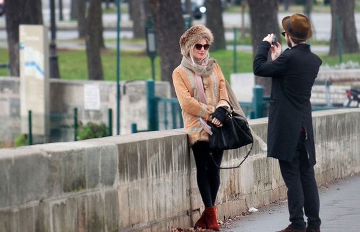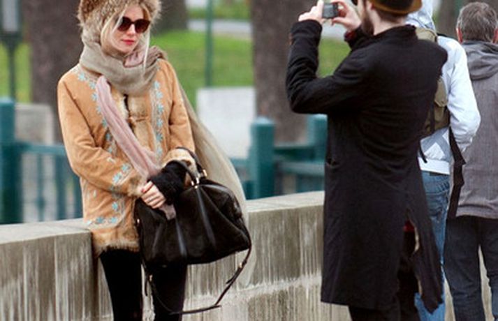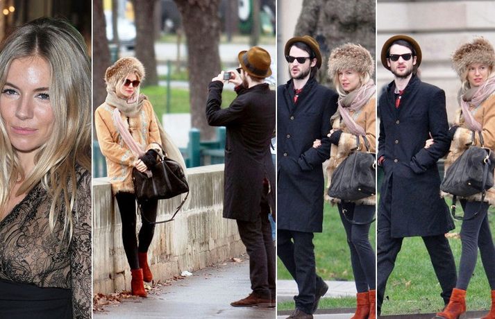 Meðfylgjandi myndir voru teknar í París af bresku leikkonunni Siennu Miller, 30 ára, með unnusta sínum Tom Sturridge, 26 ára, en þau eiga von á barni samkvæmt tímaritinu US Weekly. Tom, sem er líka leikari fæddur og uppalinn í Englandi, hefur átt vingott við Siennu í eitt ár. Að sögn vina þeirra hafa þau ekki í hyggju að giftast. Tom er ungur og þroskaður miðað við aldur og eðal náungi, ef marka má frásögn vina Siennu. Parið spókaði sig um á listasýningu í Petit Palais eins og sjá má á myndunum.