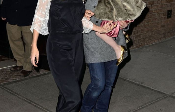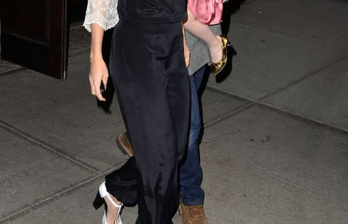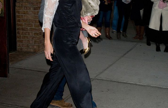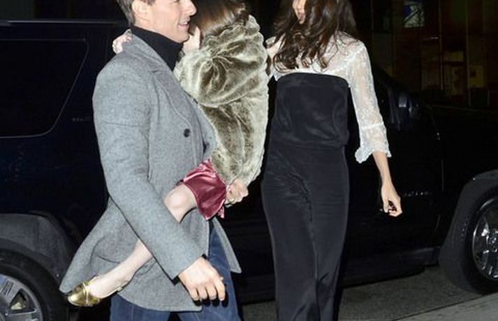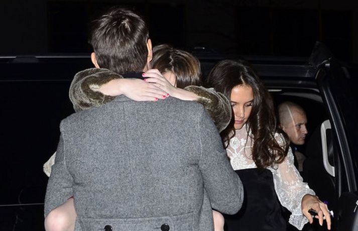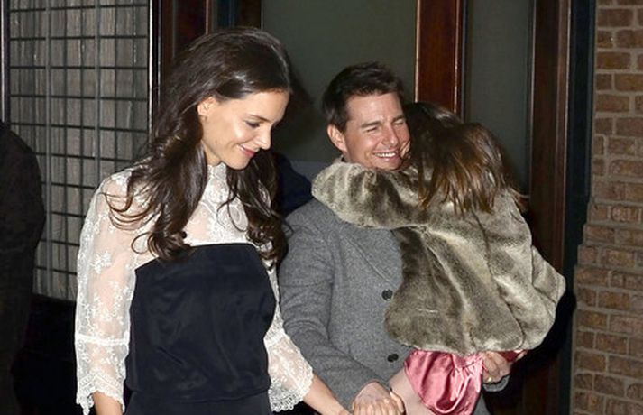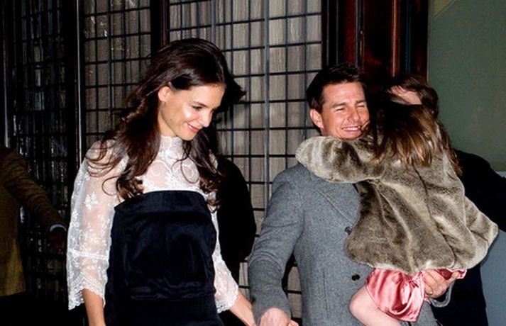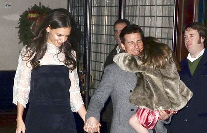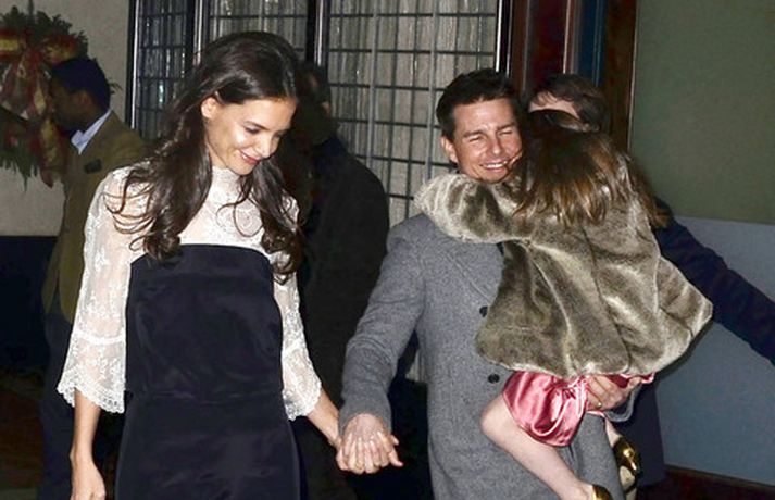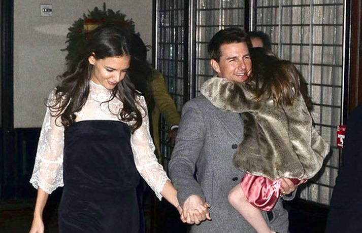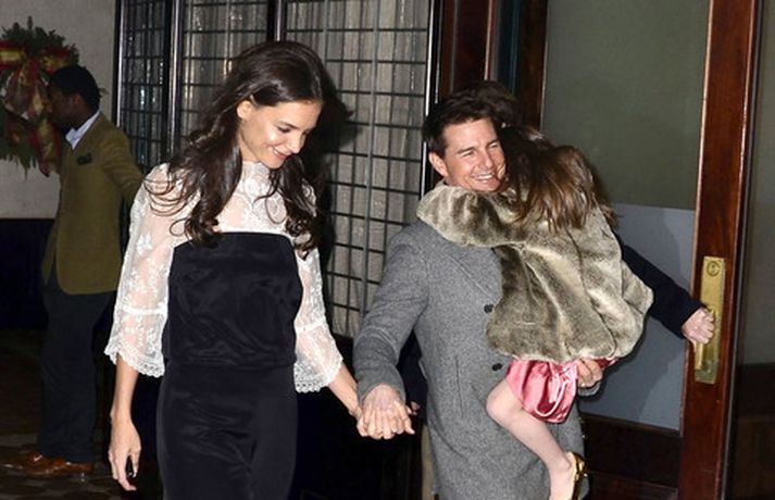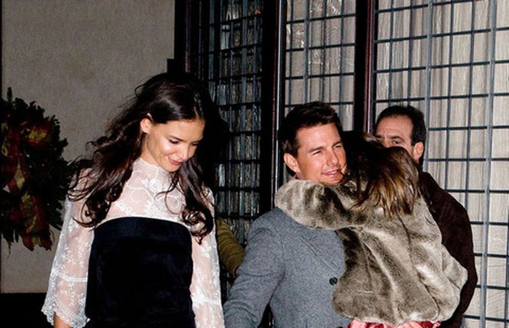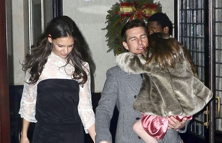 Leikarinn Tom Cruise, 49 ára, eiginkona hans, leikkonan Katie Holmes, 33 ára, yfirgáfu veitingahús í New York ásamt dóttur þeirra Suri eins og sjá má í myndasafni. Tom borgaði litlar 600 þúsund krónur fyrir að hafa heilt skautasvell út af fyrir sig og fjölskylduna í síðustu viku. Þar skautaði Tom óáreittur með stúlkunum sínum á milli þess sem þau drukku heitt kakó.