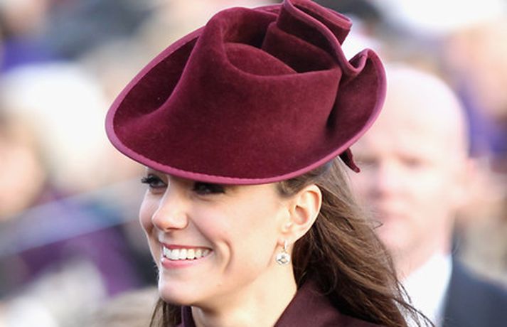 Vínrauður hattur hertogaynjunnar af Cambridge, Kate Middleton, vakti vissulega lukku viðstaddra, þegar hún ásamt konungsfjölskyldunni skundaði til kirkju á jóladag. Um var að ræða árlega kirkjusókn fjölskyldunnar í Sandringham kirkju í Englandi. Hattinn má skoða betur í meðfylgjandi myndasafni.