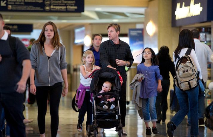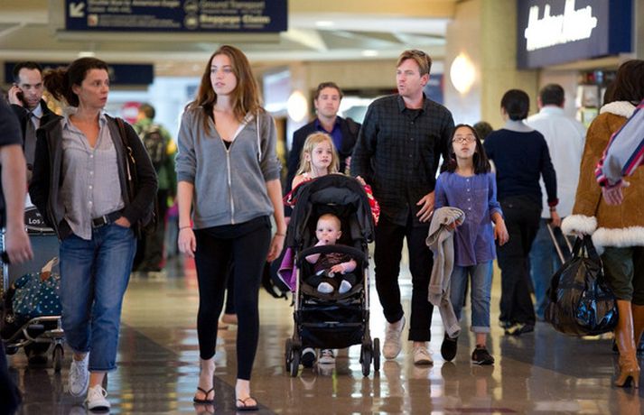 Skoski leikarinn Ewan McGregor, 40 ára, var staddur á LAX flugvellinum í Los Angeles í gær ásamt fjölskyldu sinni sem skoða má í myndasafni.Þegar þú hefur samþykkt handrit verður þú að leggja þig fram við að ganga eins langt og ætlast er til af þér á meðan tökur standa yfir, lét Ewan hafa eftir sér. Þá má sjá Ewan og eiginkonu hans, Eve Mavrakis, þegar þau mættu í Serpentine galleríið í London síðasta sumar. Saman eiga þau fjögur börn.