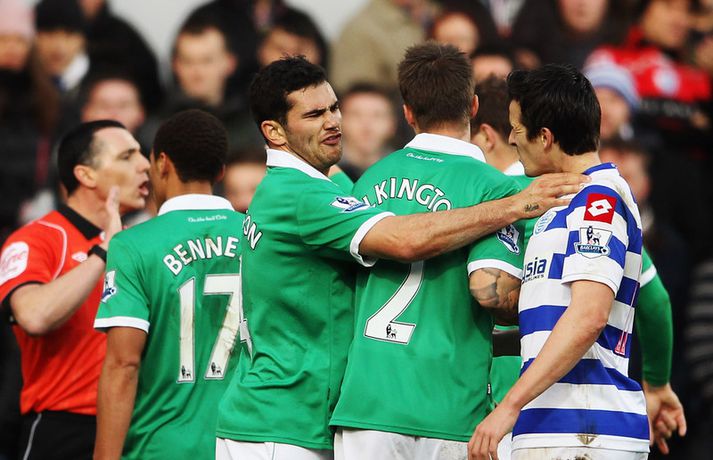 Joey Barton var ekki par sáttur er hann fékk rauða spjaldið í leiknum gegn Norwich. Barton átti að hafa skallað leikmann andstæðinganna en hann neitar því staðfastlega. Sjónvarpsupptökur af atvikinu voru ekki góðar en miðað við það sem hægt var að sjá gerðist lítið. "Ég finn til með dómurunum. Það var svindlað á þeim. Þeir viðurkenndu fyrir mér í hálfleik að hafa ekki einu sinni séð þetta atvik," sagði Barton a´Twitter-síðu sinni rétt í þessu. "Aðstoðardómarinn sá þetta aldrei. Hann sá aðeins Johnson bregðast við. Höfuðið á mér færist aldrei fram á við. Þetta var fáranleg ákvörðun. Ég er búinn að sjá endurtekninguna 25 sinnum. "Ég væri fyrsti maðurinn til þess að biðjast afsökunar ef ég hefði gert eitthvað af mér. Ég get ekki beðist afsökunar því ég skallaði ekki neinn. Þessi ákvörðun er vonbrigði fyrir alla."