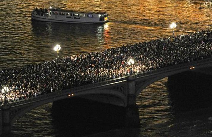 Nýju ári fagnað í Lundúnum - myndir 1. janúar 2012 11:57 Big Ben, klukkuturn Westministerhallar, og parísarhjólið London Eye. mynd/AFP Mikið var um dýrðir í Lundúnum í nótt. Mikill fjöldi fólks safnaðist saman við Thamesá til að fagna nýju ári og fylgjast með flugeldasýningunni. Að vanda sló Big Ben inn nýja árið og það var ákaft fagnað þegar síðasti tónninn var sleginn. Parísarhljólið London Eye var síðan miðpunktur glæsilegrar flugeldasýningar sem stóð yfir í tæpar 12 mínútur. Rúmlega 12.000 flugeldar voru sprengdir á meðan fjöldinn fagnaði og dansaði við tóna frá plötusnúð BBC Radio 1. Hálf milljón manna mun síðan taka þátt í nýársskrúðgöngu í borginni í dag. Um 10.000 hljóðfæraleikarar og skemmtikraftar frá Bandaríkjunum munu taka þátt í göngunni. Aðstandendur göngunnar segja að hún sé í raun lokaæfing fyrir Ólympíuleikanna sem fara fram í Lundúnum á árinu. Mest lesið Banaslys á Hvolsvelli Innlent Vinum hans ekki litist á blikuna Innlent Sumarbústaðaeigendur geti skotið upp flugeldum annars staðar Innlent Karólína Helga býður sig fram gegn sitjandi oddvita Innlent Veki furðu að bílaleigubílar séu ekki á nagladekkjum Innlent Tekur stóra skammta af magnýl og leiðist að hreyfa sig Erlent Fyrsta fórnarlambið nafngreint Erlent Þurfi að sannfæra flokkinn Innlent Segjast hafa sviðsett aftöku og hirt verðlaunaféð af Rússum Erlent Kveður klettinn í lífi sínu eftir skyndileg veikindi Innlent Fleiri fréttir Vinna með yfirvöldum í níu löndum að bera kennsl á látna Fyrsta fórnarlambið nafngreint Tekur stóra skammta af magnýl og leiðist að hreyfa sig Barist á götum úti í Íran fimmta daginn í röð Segjast hafa sviðsett aftöku og hirt verðlaunaféð af Rússum Fimm daga þjóðarsorg lýst yfir í Sviss Óttast að um fjörutíu hafi látist á skemmtistaðnum Sór embættiseiðinn á niðurlagðri neðanjarðarlestarstöð Kirkja í Amsterdam alelda Tugir látnir eftir sprengingu í svissneskum skíðabæ Kamilla Bretadrottning greinir frá kynferðisofbeldi Dótturdóttir JFK er látin Handtóku 357 meinta ISIS-liða í kjölfar mannskæðra átaka „Sannur Finni“ fær hæli í Rússlandi Sífellt fleiri hermenn falla á ári hverju Hvetur ESB til að svara refsiaðgerðunum Bandaríkjanna fullum hálsi Þrítugasta árásin á bát meintra smyglara TikTok-áskorun leiddi til banafalls af útvarpsmastri Blóðbaðið í El Fasher: Milljón manna borg orðin að „draugabæ“ Neita að ræða við Úkraínumenn vegna meintrar árásar á heimili Pútíns Sádar sprengja hergögn frá furstadæmunum í Jemen og hóta frekari árásum Á lista yfir þrjú hlýjustu ár í mælingasögunni Selenskí sver af sér drónaárás á heimili Pútíns Bandaríkin leggja til tvo milljarða dala með skilyrðum Trump hótar skelfilegum afleiðingum afvopnist Hamas ekki Neita að tjá sig um ummæli Trumps um árás í Venesúela Kim ánægður með nýjar stýriflaugar Þrír lögregluþjónar og sex ISIS-liðar fallnir eftir átök í Tyrklandi Vill lengri tryggingar og tilbúinn til að hitta Pútín Frímúrarareglan vill lögbann á nýjar lögreglureglur Sjá meira