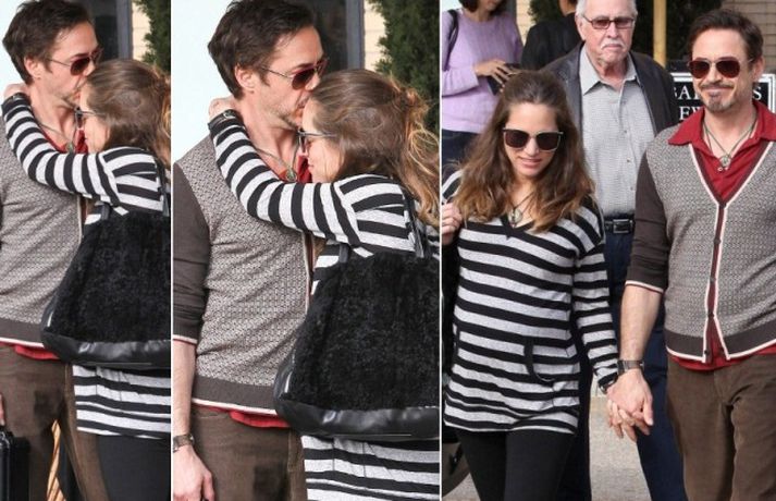 Sherlock Holmes stjarnan Robert Downey Jr., 46 ára, átti innilega stund með Susan eiginkonu sinni þegar hann kyssti hana á ennið á verslunargötu í Beverly Hills síðasta sunnudag. Robert hefur sýnt hlutverki spítstráksins Gosa áhuga sem Tim Burton hefur í hyggju að gera. Susan er langt gengin með barnið þeirra eins og sjá má á myndunum.